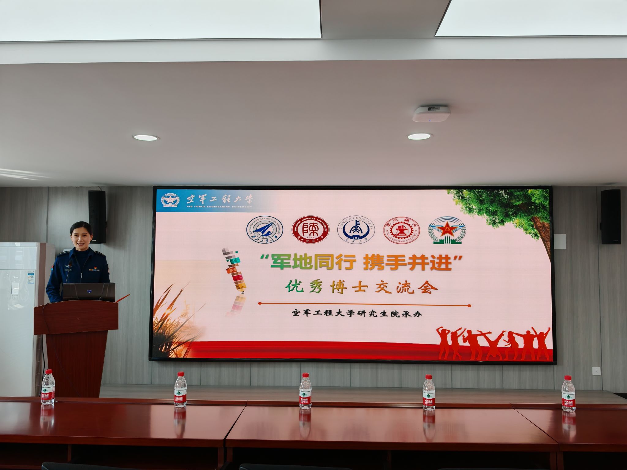 2024年3月2日下午,公司博士研究生党支部受邀参加了在空军工程大学长乐校区研究生公寓多功能厅举办的“军地同行 携手并进”空军工程大学研究生院某学员队优秀博士交流会。公司博士研究生党支部书记贺嘉馨、宣传委员刘柯作了主题汇报,支部成员吕心妍、董原、莫正晖参加了学习。西北工业大学、西安交通大学、长安大学等高校优秀博士代表也参与了此次学习交流活动。