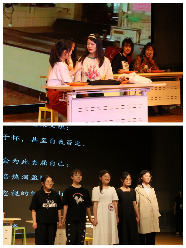 参加比赛的8支队伍从时下热点问题出发,结合自身经历,真实再现了大公司园生活中常见的心理矛盾冲突,用生动形象的演出,还原生活真谛,传递人生正能量。《尘埃里的花》引导我们要珍惜当下,勇于追寻梦想和幸福;《选择》时要保持清醒,避免步入泥沼;《情绪特工队》讲述了疫情防控期间宿舍成员之间的相处经历,告诉我们要管理好自己的情绪,相互包容和理解;《青春不负债》摆脱校园贷,积极享受青春生活;《面具》中卸下伪装,找到最真实的自己;《思来想去》摆脱精神内耗,增强心灵“钝感力”;《内卷不绝》卷出多样,缓释压力;《超前消费?不》主张合理消费,理性生活。