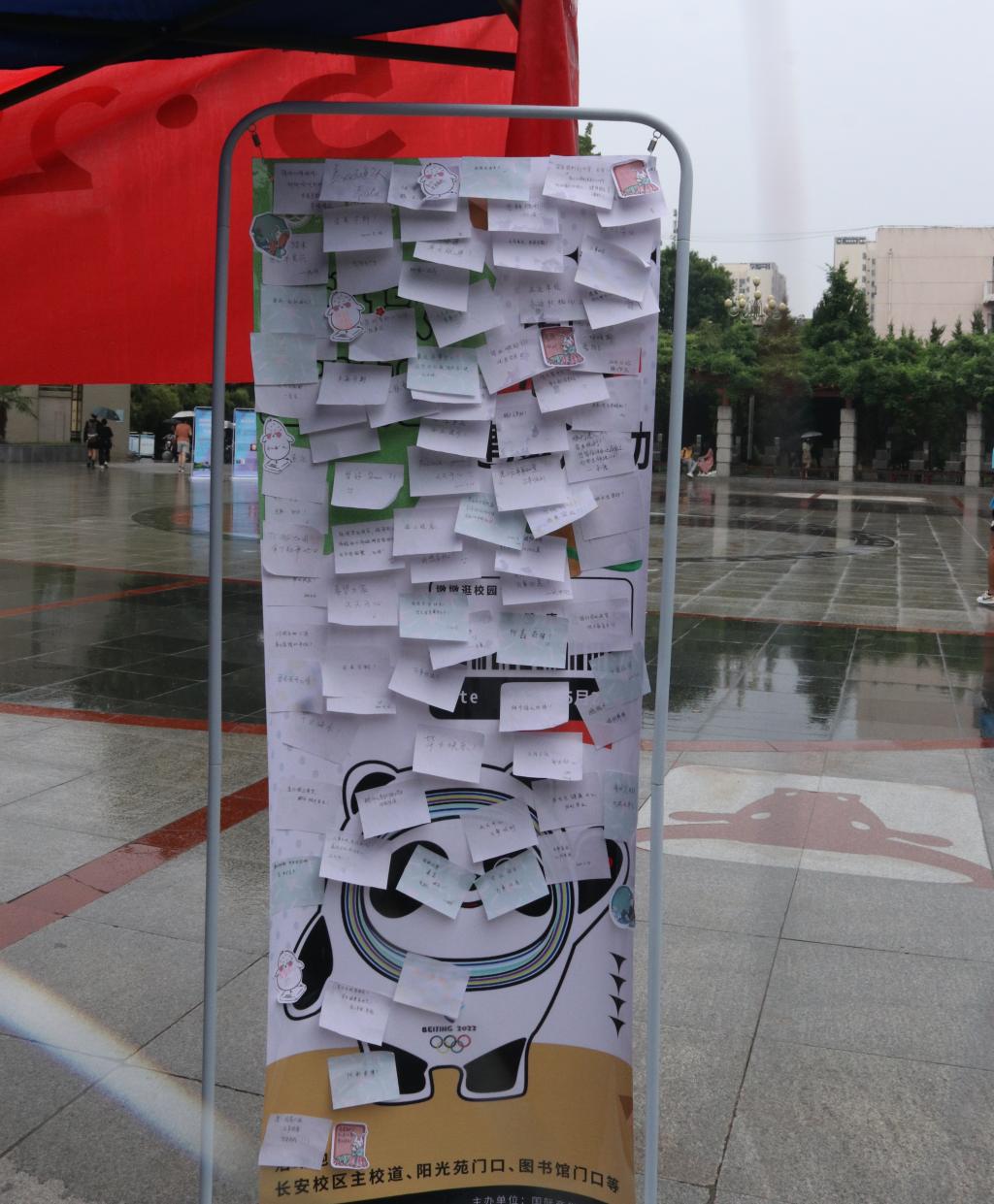 公司研究生化身“大白”和“墩墩”在阳光苑广场与师生相遇,通过主动打招呼、互动拥抱、赠送活动纪念书签、卡片、小零食等形式,与参与师生展开互动,为大家送去温暖与祝福。有些同学一开始虽然略有害羞,但是在“大白”和“墩墩”的热情邀请下也积极参与其中,部分同学还在活动心愿墙上写下了“关爱自己”的寄语。