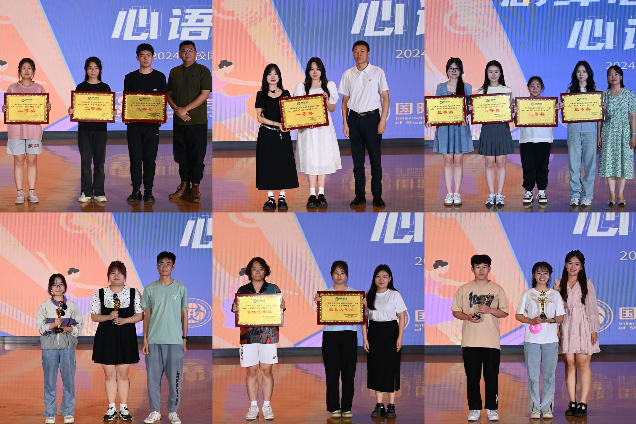 经过激烈的角逐,最终产生一等奖一名、二等奖三名、三等奖四名,最佳创意奖、最具人气奖共十个集体奖项,产生了最佳编剧、最佳导演、最佳男演员、最佳女演员四个单项奖,与会老师为获奖集体和个人进行了颁奖。