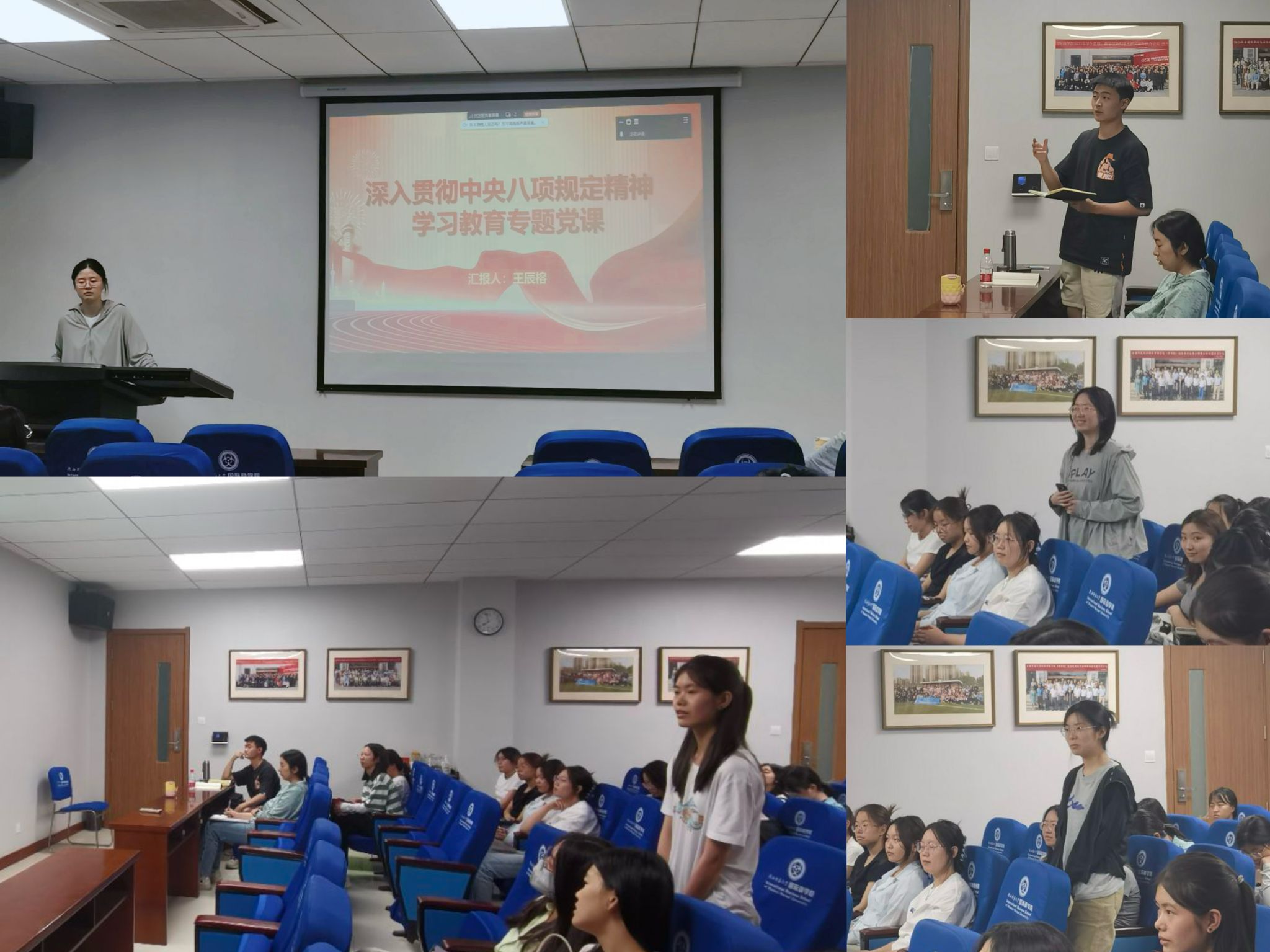 党支部书记王辰榕同志领学《八项规定改变中国》和《党的十八大以来深入贯彻中央八项规定精神的成效和经验》两篇文章并讲授主题党课,强调要将中央八项规定精神融入日常、内化为价值追求,不断强化党性修养,持之以恒正风肃纪,推进作风建设常态化长效化。
