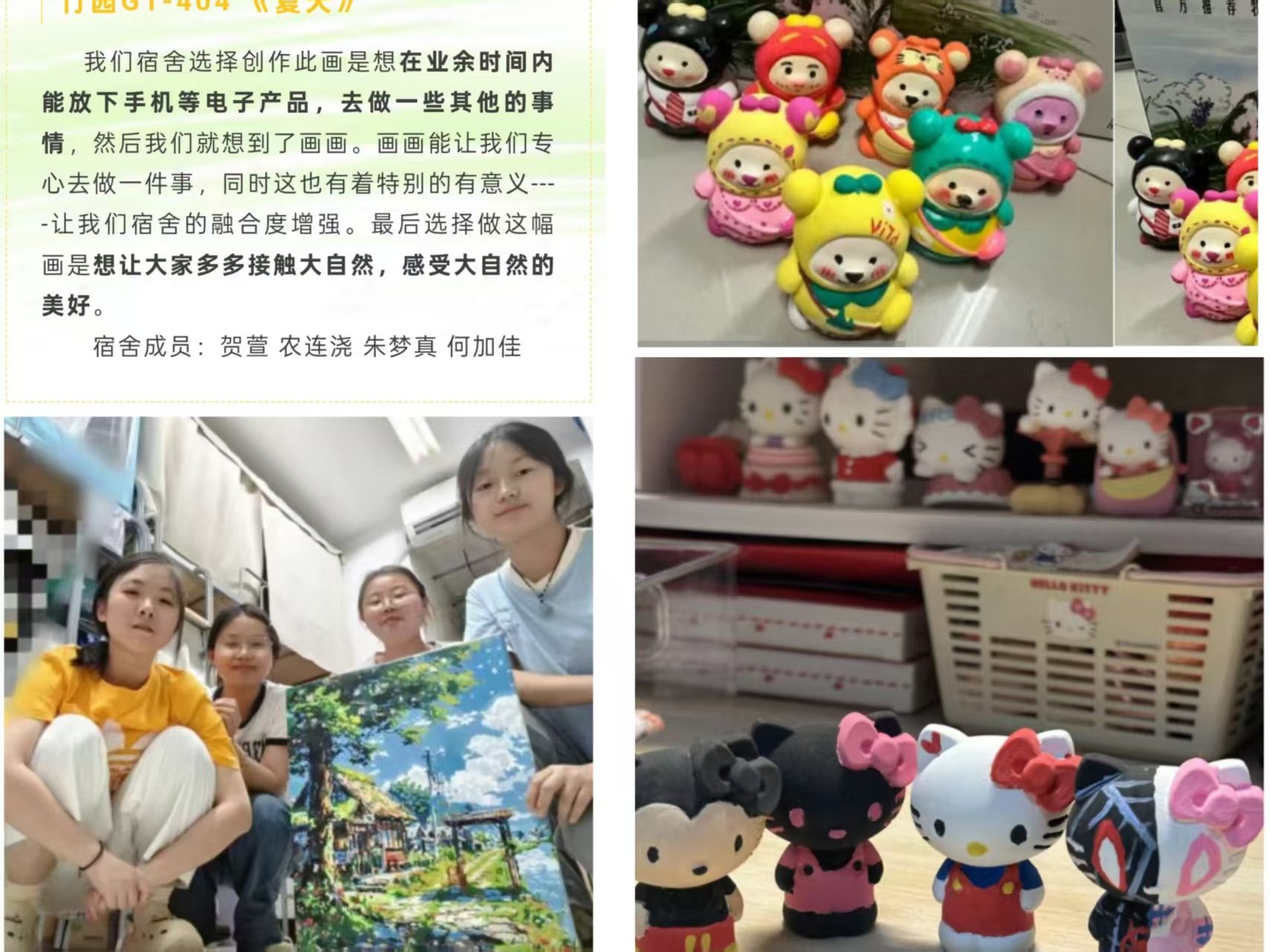 4月,各班开展“心向微光,愈见美好”心理团体辅导活动,以班级为单位,通过互动游戏、主题班会等在团体环境中挖掘员工潜能,增强集体归属感;5月,开展“春光作序,一见钟寝”宿舍文化节,通过让宿舍成员合作完成一件创意作品的形式,营造积极快乐的宿舍氛围,以合作创作促进室友情感联结。