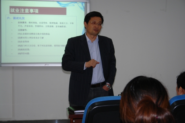 随后,解勇国书记向研究生强调了在就业中需要注意的几个问题。首先,要认清形势,增强就业紧迫感。他向同学们分析了当前的就业形势,一是2013届普通高校毕业生人数比往年有所增多,加上往年未就业的毕业生,实际参加就业的绝对人数比往年都要多;二是社会经济发展减缓,所能提供的就业岗位不能满足毕业生人数增加的需求;三是结构性矛盾依然突出。接着,解书记指出要认真准备,注重细节。一是要结合应聘意向有针对性写好自荐书,实事求是的展示自身的优势,言简意赅,切忌过于谦虚或过于浮夸,或千篇一律,毫无特色;二是要注重细节,牢记细节决定成败。解书记还强调要主动出击寻找更多的就业机会。他希望毕业研究生不要有等、靠、要的思想,要有“八仙过海,各显神通”的意识,寻求更多的就业机会。