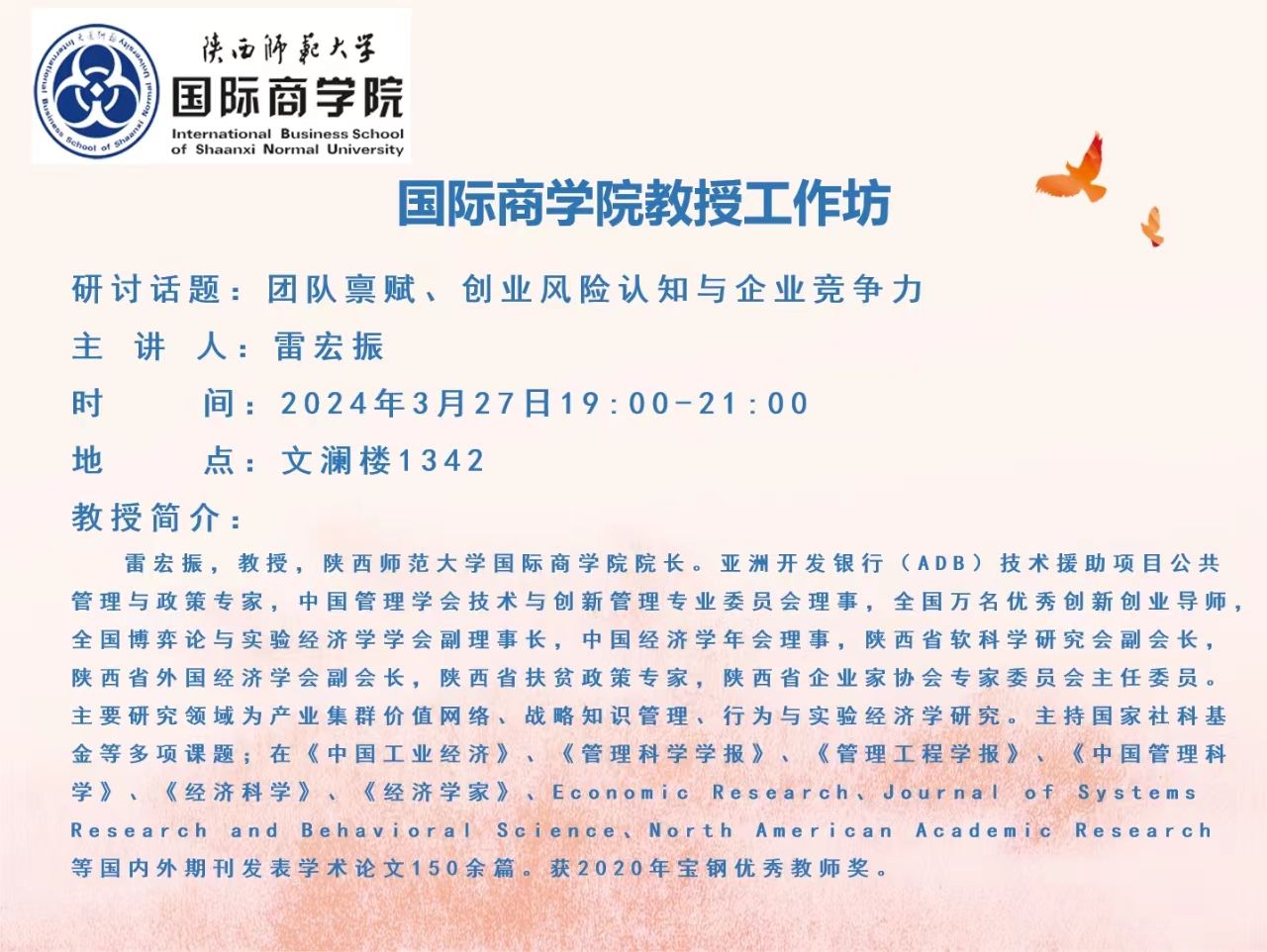 beats365唯一官方网站教授工作坊——团队禀赋、创业风险认知与企业竞争力