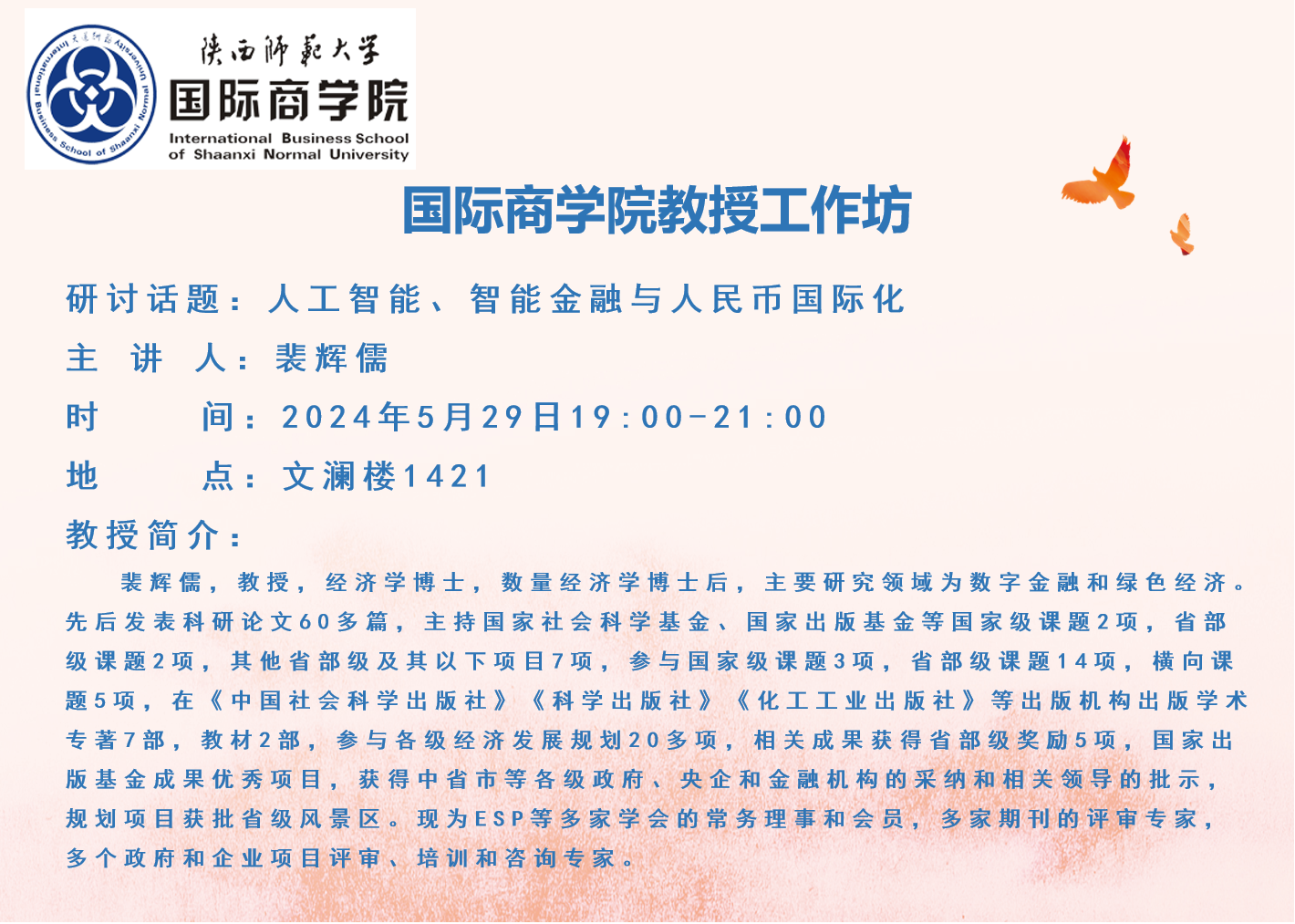 beats365唯一官方网站教授工作坊——人工智能、智能金融与人民币国际化