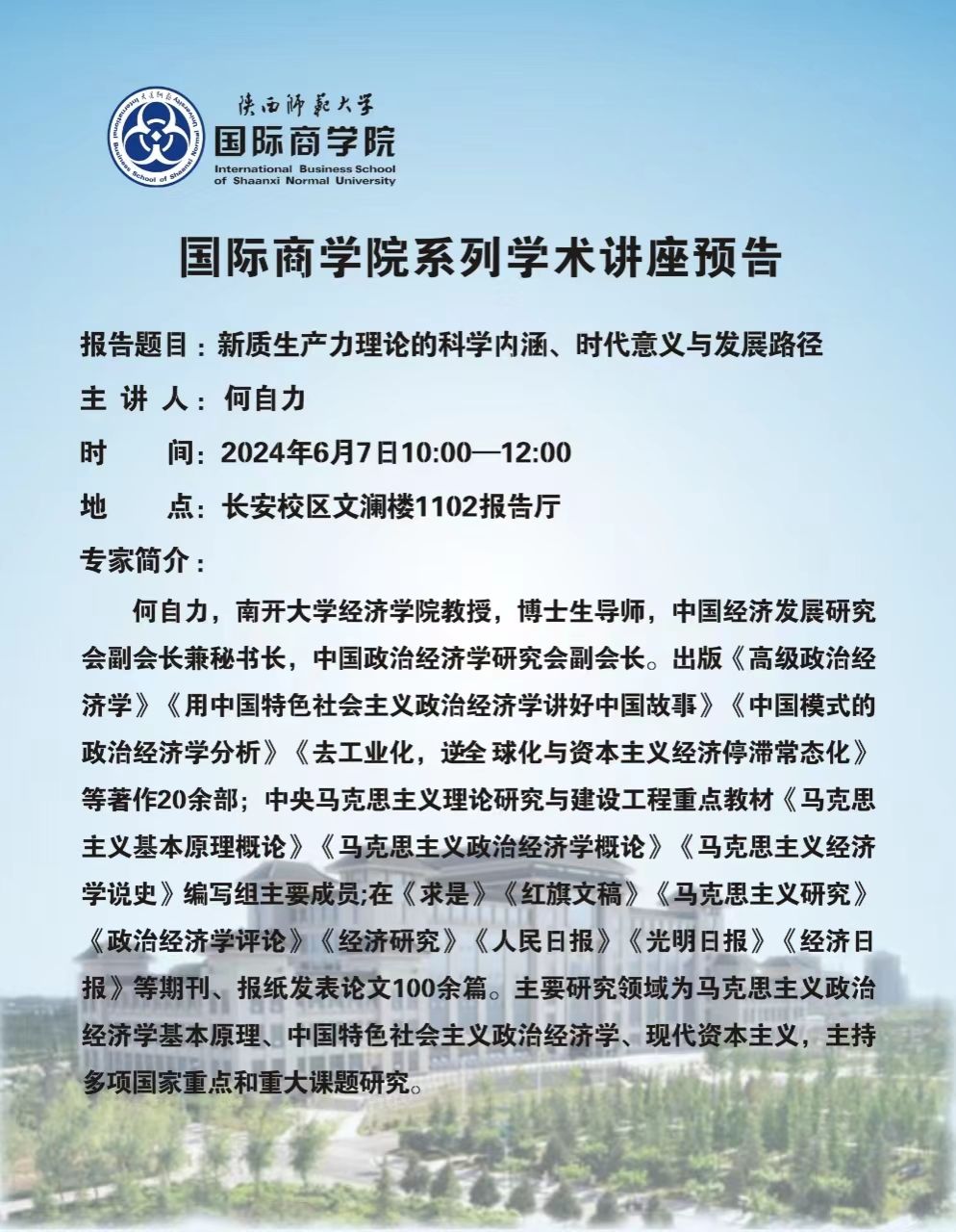 学术讲座预告——新质生产力理论的科学内涵、时代意义与发展路径