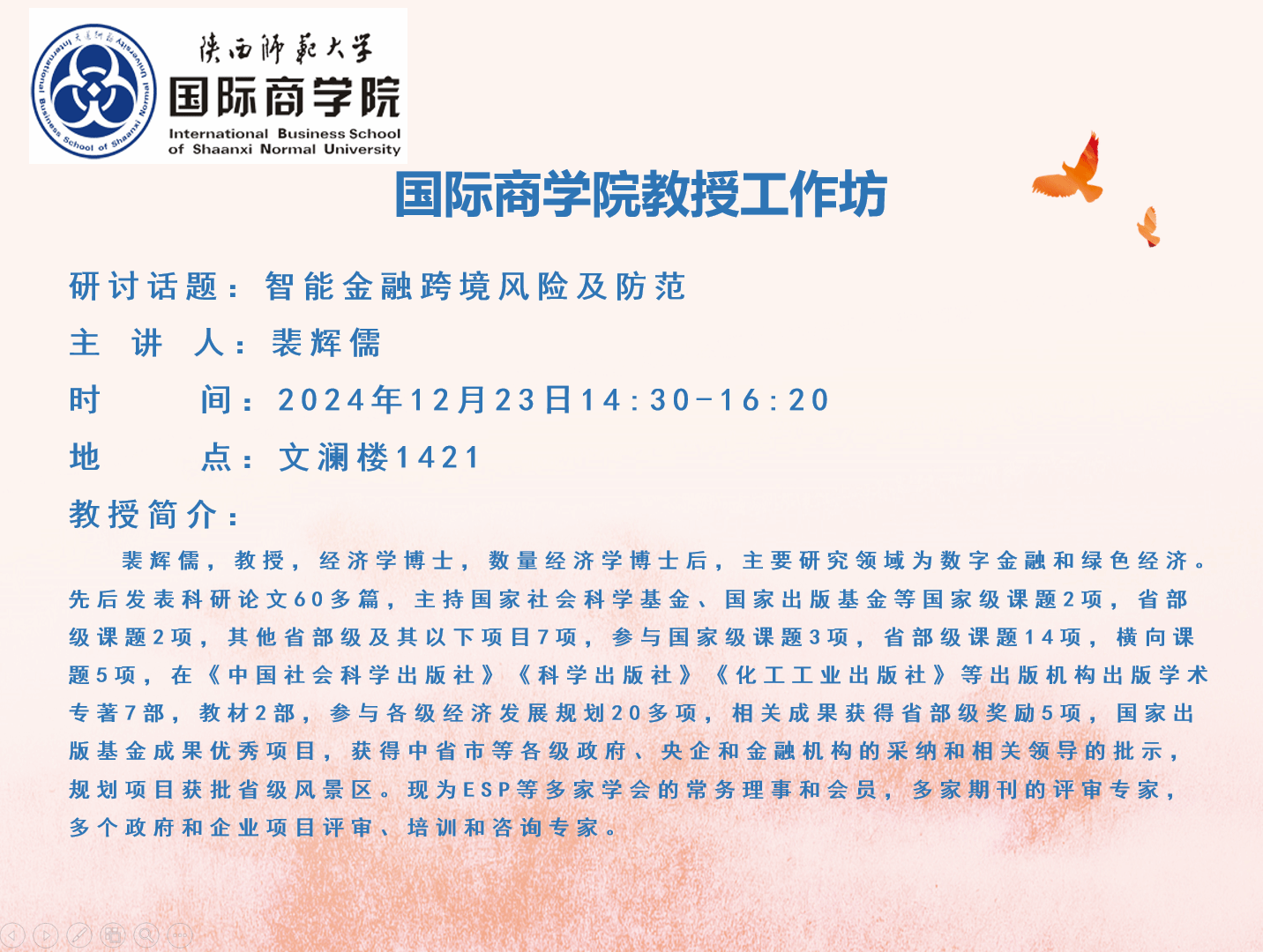 beats365唯一官方网站教授工作坊——智能金融跨境风险及防范