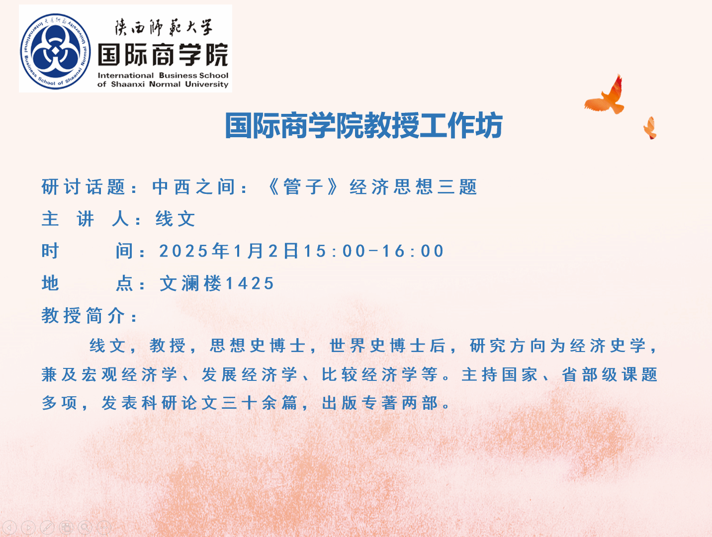 beats365唯一官方网站教授工作坊——中西之间:《管子》经济思想三题