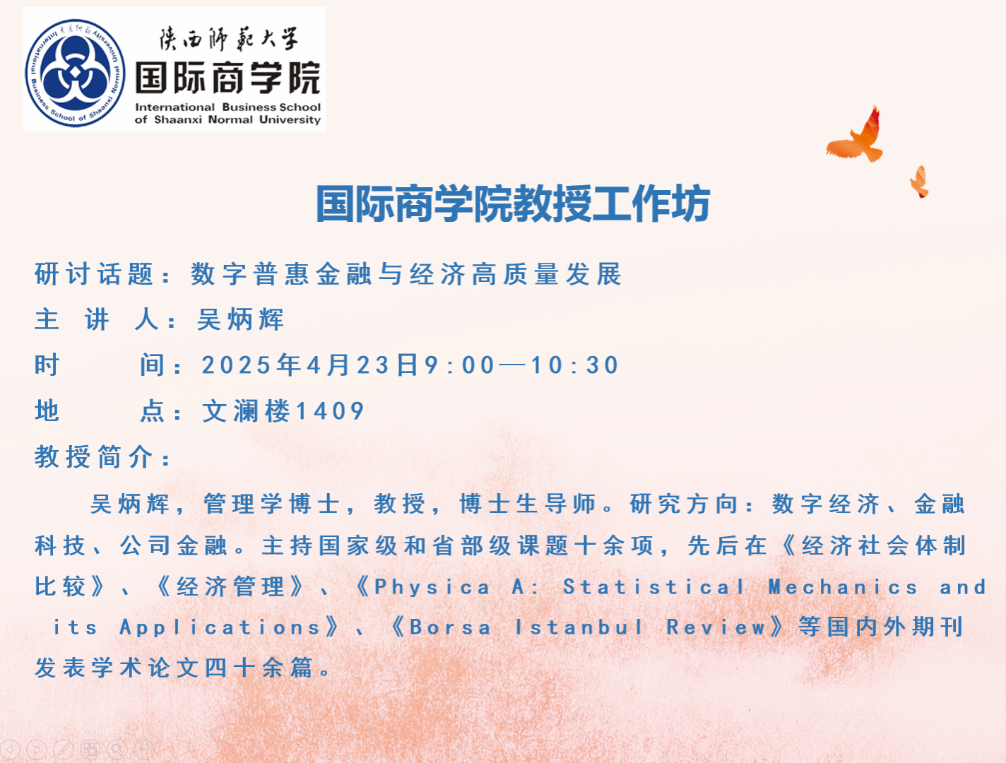 beats365唯一官方网站教授工作坊——数字普惠金融与经济高质量发展