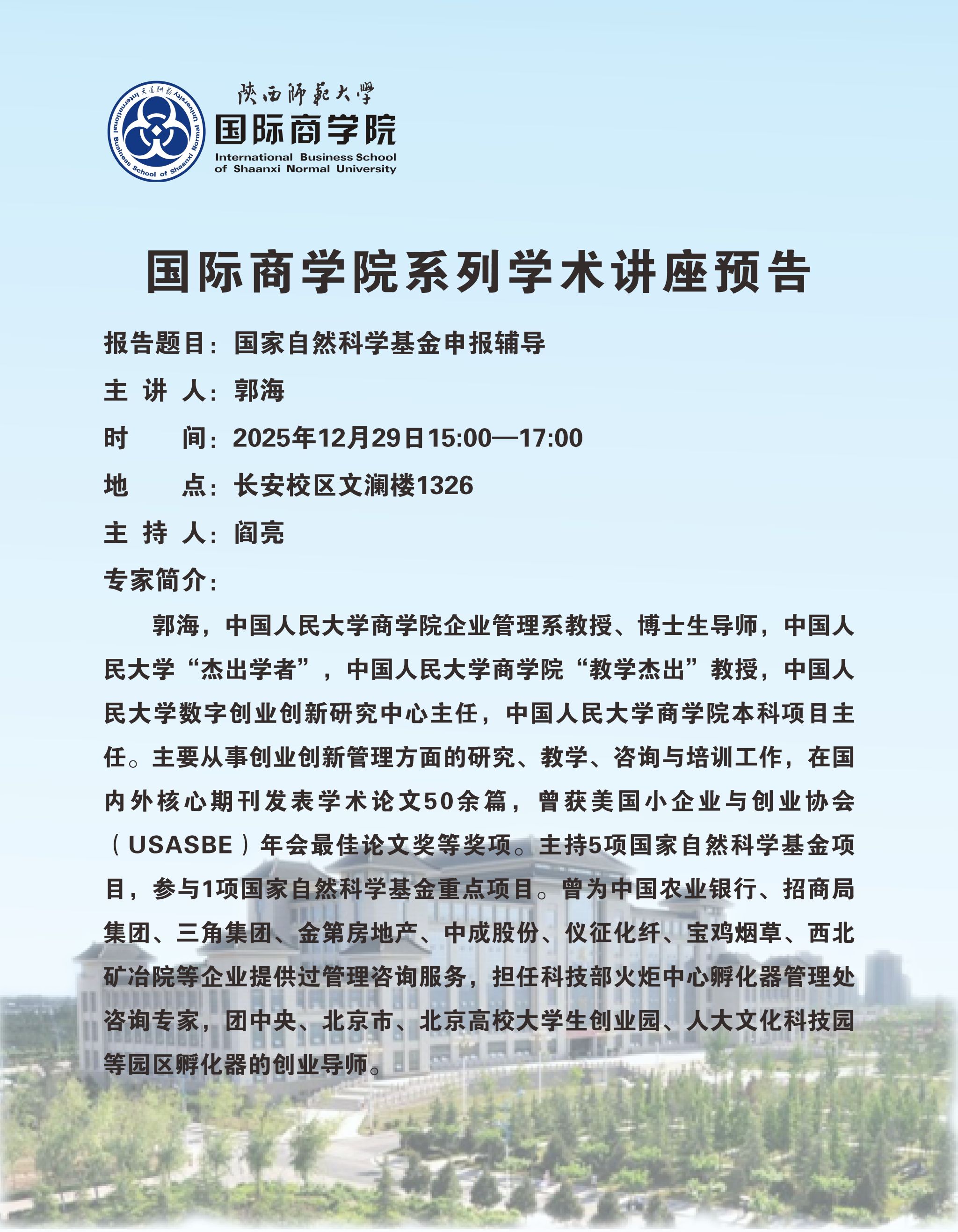 学术讲座预告——国家自然科学基金申报辅导