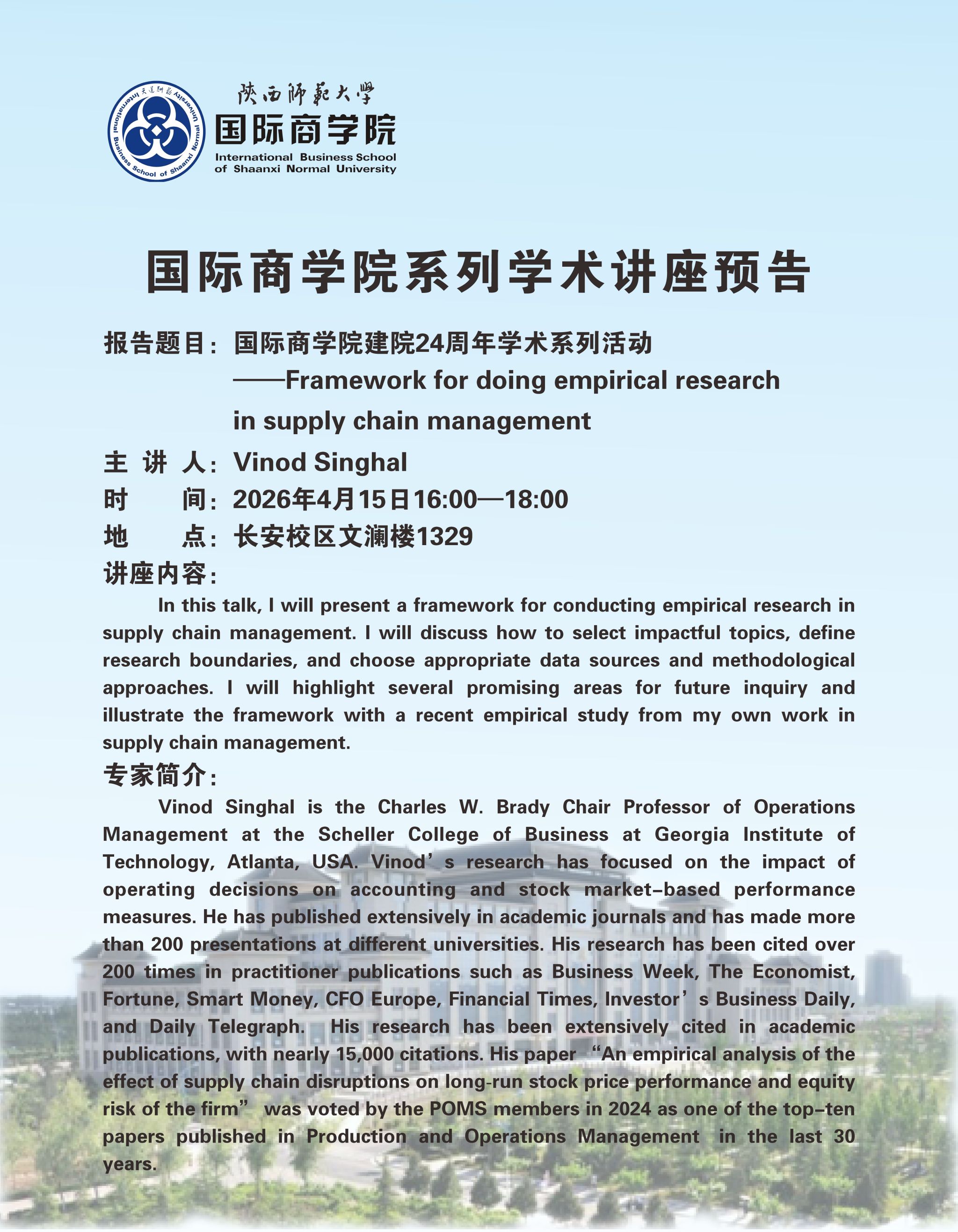 beats365唯一官方网站建院24周年学术系列活动——Framework for doing empirical research in supply chain management