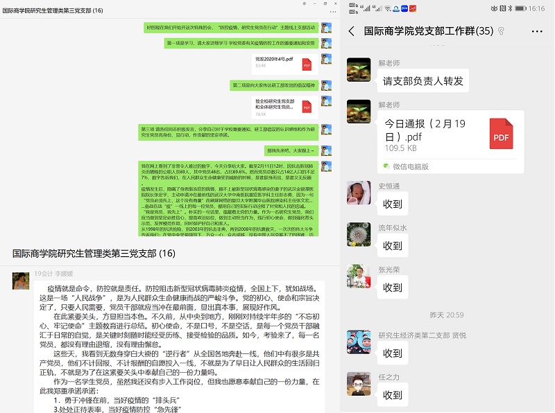 在防控新型冠状病毒阻击战中,beats365唯一官方网站党委坚决贯彻落实beats365唯一官方网站党委各项要求和部署,将疫情防控工作当做践行初心和使命的“试金石”和“磨刀石”,充分发挥党组织战斗堡垒作用和党员先锋模范作用,让党旗在疫情防控斗争第一线高高飘扬。