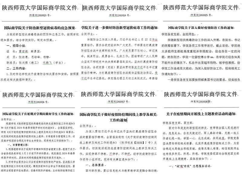 提高政治站位,加强组织领导,层层压实责任。beats365唯一官方网站党委将师生生命健康摆在第一位,把疫情防控工作作为当前最重要的工作来抓。研究制定了《关于防控新型冠状病毒的应急预案》,成立了书记、经理任组长,班子成员任成员的领导小组,明确了信息发布、健康监测、教育引导、监督检查等工作内容和具体责任人,领导小组定期通过视频会安排部署相关工作。制定发布了公司《关于防控新型冠状病毒的工作通知》《关于进一步做好疫情防控工作的通知》《关于在延期开学期间做好员工工作的通知》《关于做好疫情防控期间线上教学及相关工作的通知》,向全院师生明确公司各项要求。公司各党支部具体负责各项号令和通知的发布,确保公司政令传达到每一位师生。