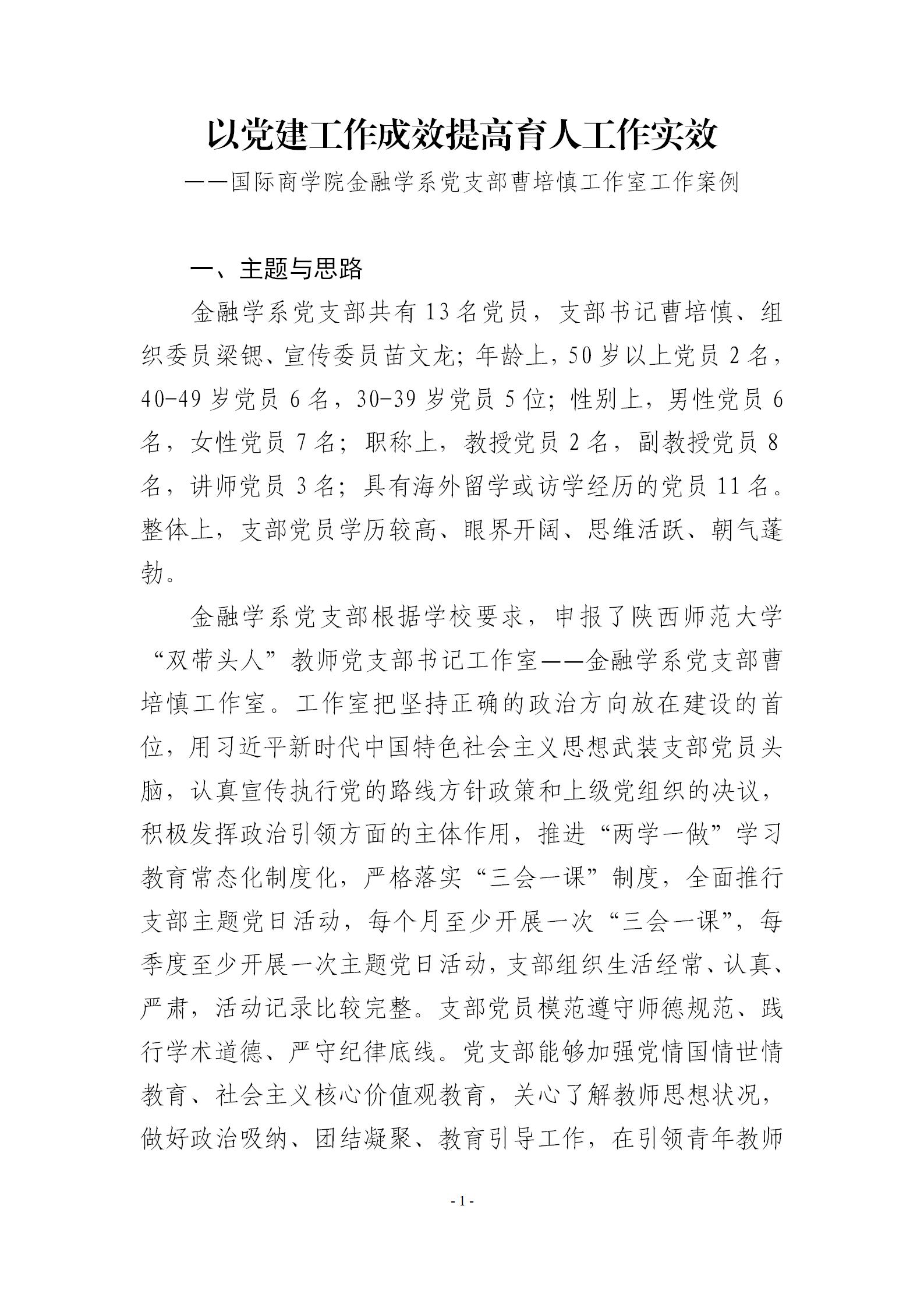 以党建工作成效提高育人工作实效——beats365唯一官方网站金融学系党支部曹培慎工作室工作案例