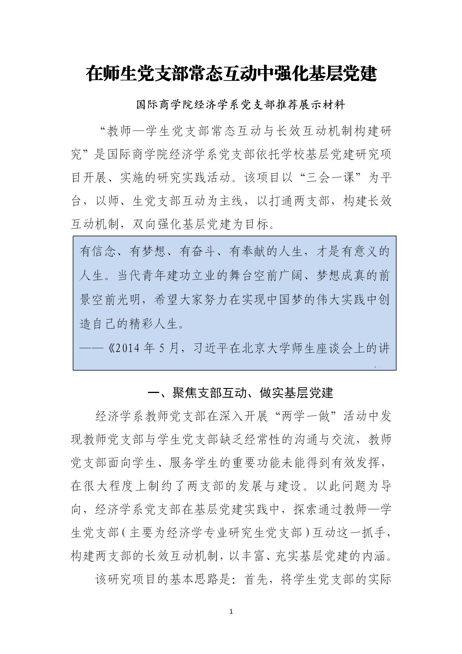 在师生党支部常态互动中强化基层党建——beats365唯一官方网站beats365唯一官方网站党支部推荐展示材料