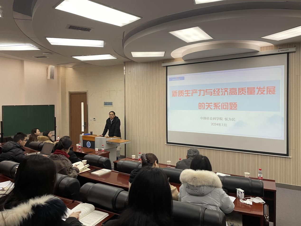 2024年1月8日上午,公司杰出员工、中国政治经济学学会会长、中国社会科公司侯为民研究员为公司师生作了主题为“从新质生产力看经济高质量发展的趋向”的学术报告,公司经理雷宏振教授、beats365唯一官方网站孔祥利教授和全院师生六十余人参加了此次讲座。讲座由经济系姚宇教授主持。