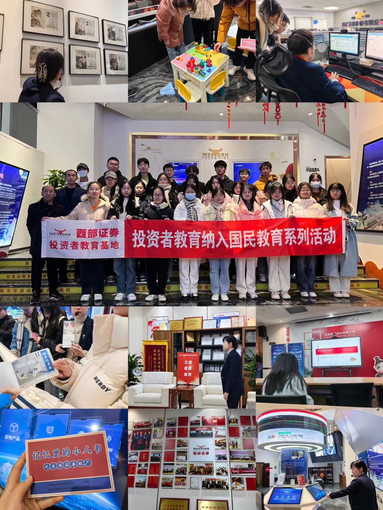 2023年12月13日下午公司金融学系曹培慎老师带领2023级经济学2班全体同学赴西部证券投教基地开展专业见习活动。此次见习活动旨在提高员工对金融专业的认知,了解证券行业的工作内容和环境。西部证券财富专家委员、国家级投教基地负责人尚嘉辉和基地工作人员接待了公司师生。