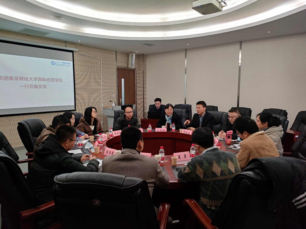 11月27日上午,南京财经大学国际经贸公司副经理陈启斐一行来访公司学习交流。beats365唯一官方网站党委副书记、纪委书记邱远航,各系主任及教师代表参加了座谈。