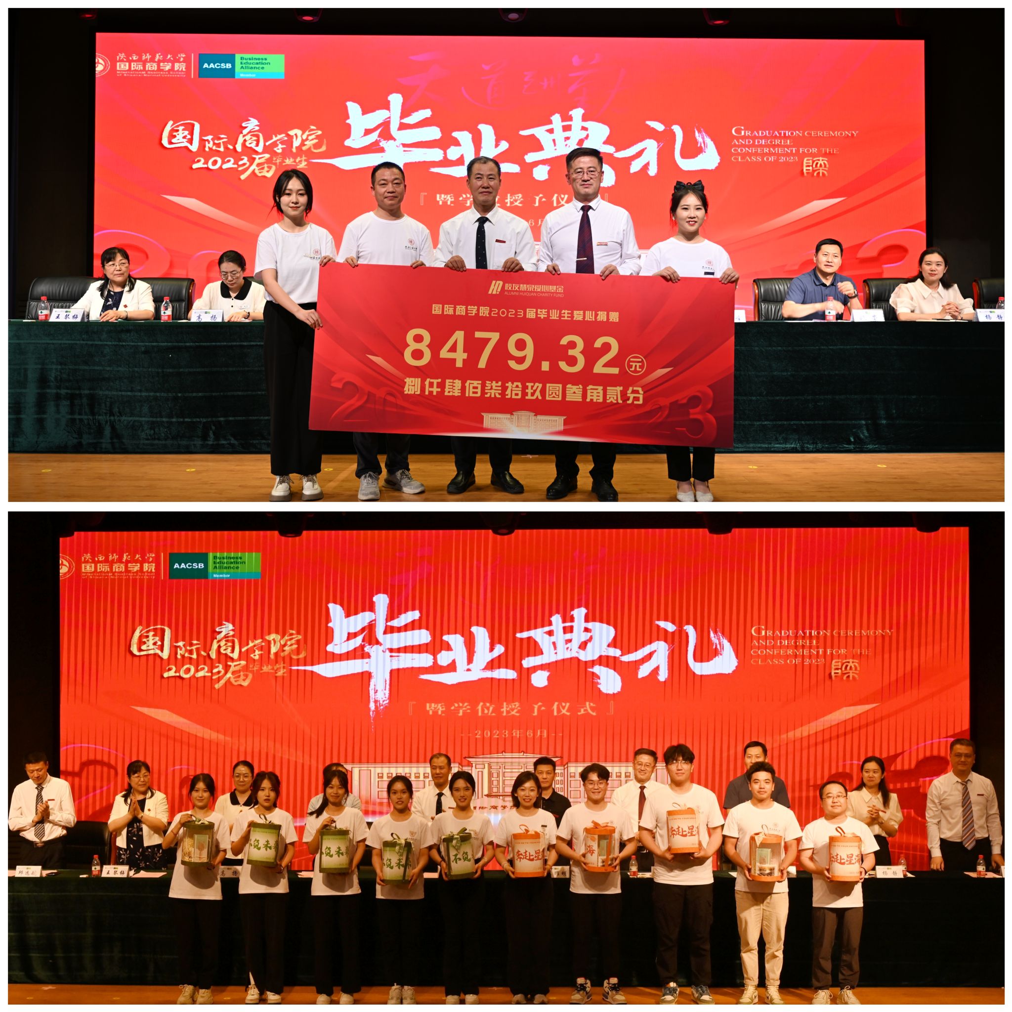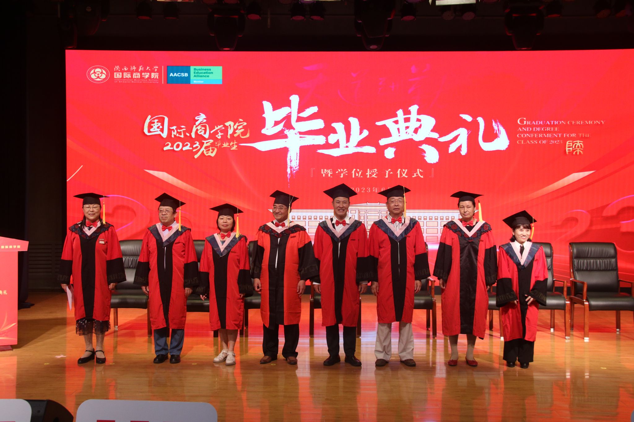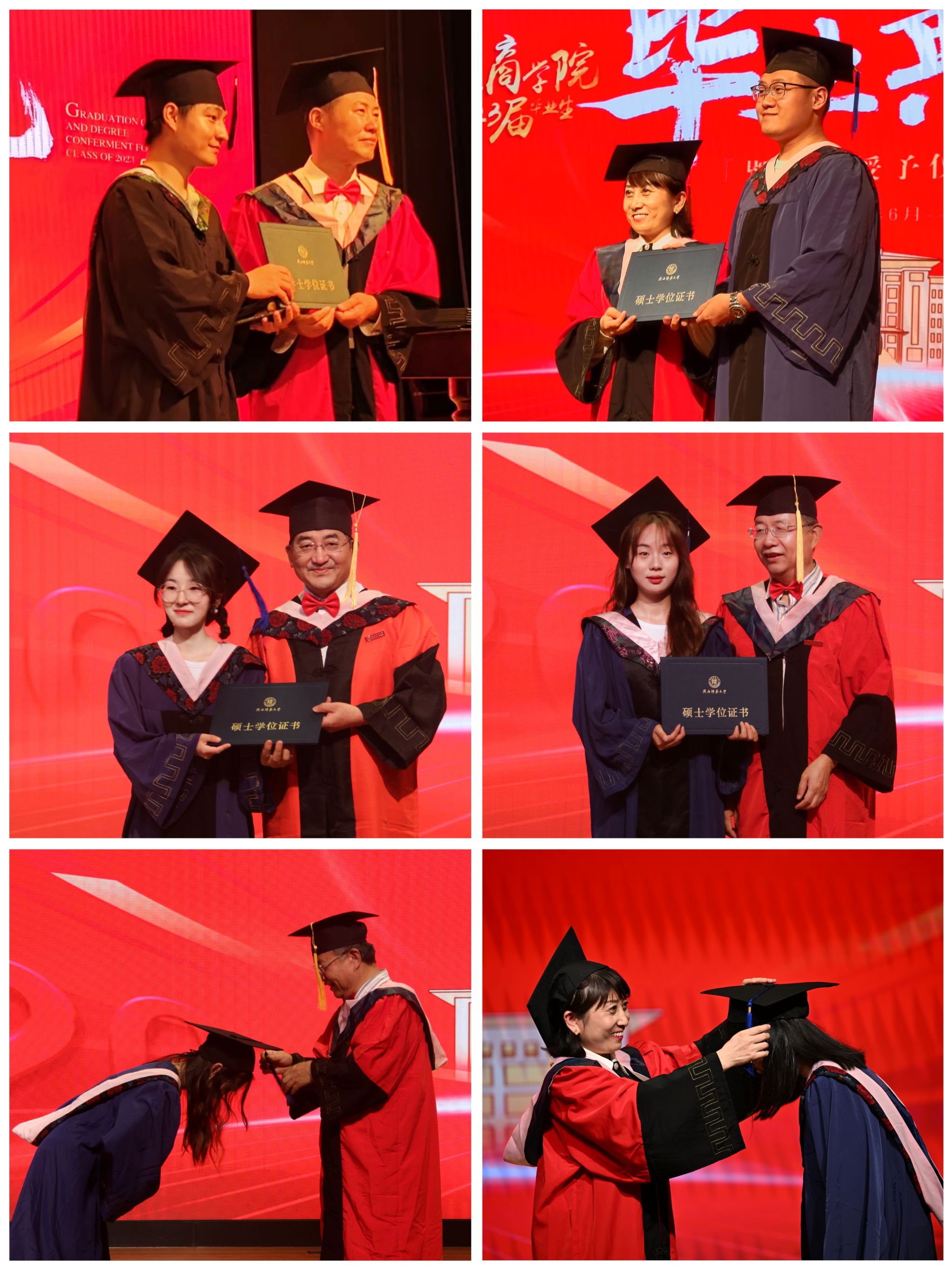 学位授予仪式上,公司经济学、管理学学位评定委员会委员王琴梅教授宣读了研究生和本科生学位授予决定,雷宏振、张治河、张映芹、孔祥利、王兆萍、王琴梅、睢党臣、任海云八位等教授为全体毕业生进行了学位授予,扶苏拨穗。