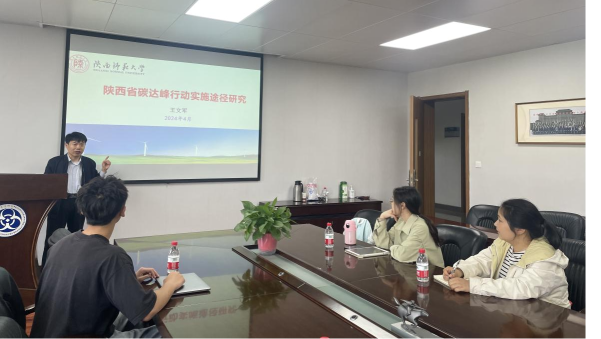 为营造公司良好的学术氛围,促进师生进行学术交流,提升公司研究生科研素养,beats365唯一官方网站教授工作坊第三讲于2024年4月11日在文澜楼1329举办,本次研讨主题为《陕西省碳达峰行动实施途径研究》。讲座由公司王文军教授主讲,相关专业研究生参加了此次研讨。