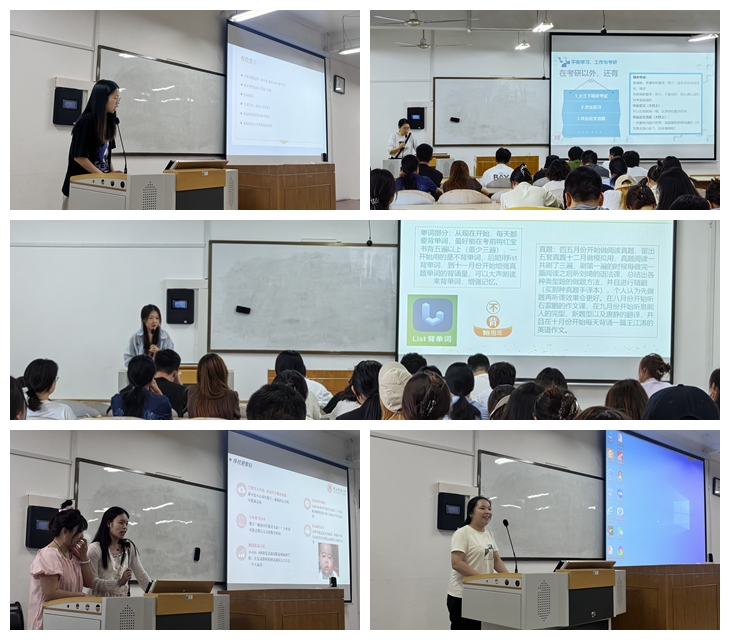 在专题分享会上,六位同学分别结合自身考研升学经验,从院校选择、复习计划、学习方法、生活作息、心态保持等方面做了全面详细的介绍和分享。六位同学在分享中提到,在院校选择上,同学们要合理选择目标院校和专业,在选择考研院校之前,要进行多方面的思考;在复习备考中,要重点评估自己的学习能力,行程系统全面的复习备考计划,同时要在考研过程中拒绝焦虑、拒绝盲目跟风、拒绝盲目攀比,根据个人实际情况做出最佳最实际的选择。
