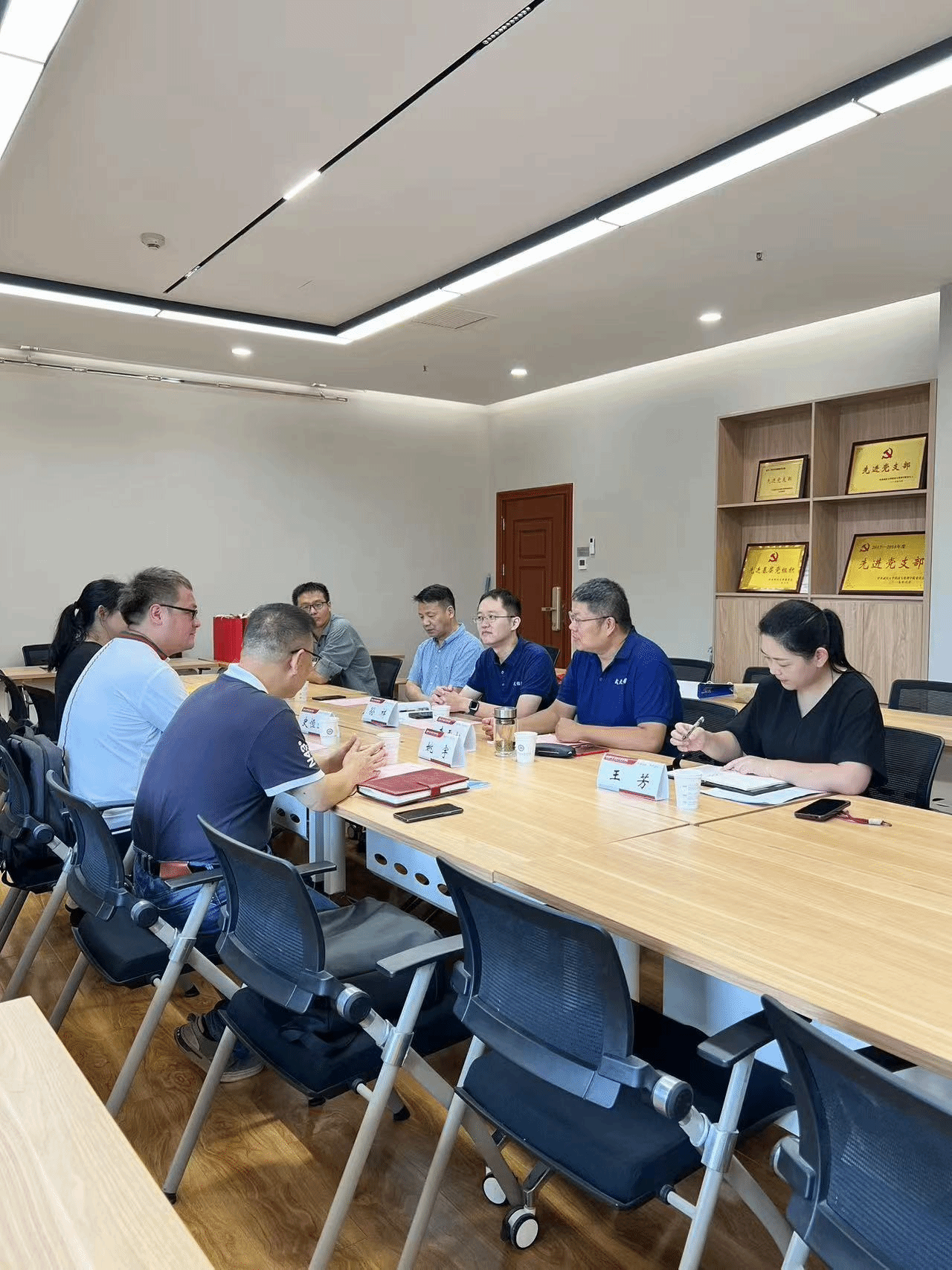 9月19日上午,武汉大学经济与管理公司副经理孙祥、经济发展研究中心叶初升、经济系主任李雪松、经济系支部委员逄金栋以及本科教务秘书王芳老师与公司教师进行了沟通交流。首先,孙祥副经理就武汉大学经济与管理公司的专业设置和学科发展特色进行了简要介绍,史恒通向对方介绍了公司历史沿革、学科门类等;随后,李雪松主任详细介绍了武汉大学经济学专业学科发展现状、招生情况及特色,并重点就经济学方向实验班、基于数字学科的培养模式及经验进行了分享,姚宇主任对公司经济学专业发展情况进行了简要介绍,提出经济学专业建设所面临的问题;最后,与会人员就经济学专业的课程设置、能力培训、校内外合作培养模式以及员工培养质量提升等话题进行了充分交流。