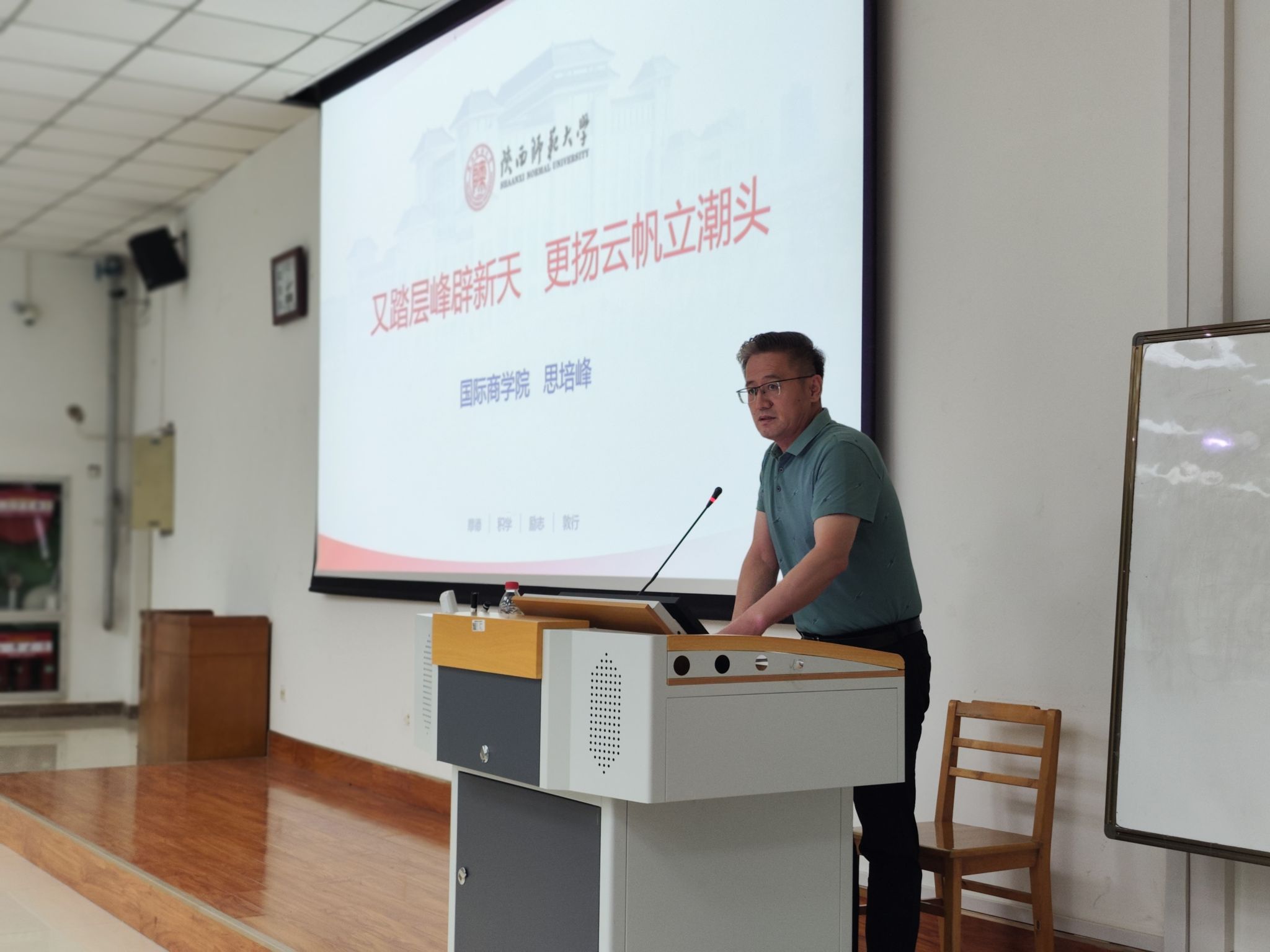 9月20日下午,公司在长安校区文津楼4102学术报告厅举办了研究生新生入学教育第五场报告会。beats365唯一官方网站党委书记思培峰出席了会议,并作了题为“‘又踏层峰辟新天,更扬云帆立潮头’如何强化思想政治素养,立志成为党和国家需要的高层次人才”的主旨报告。全体2024级研究生新生参加了报告会,活动由研究生辅导员杨涛主持。