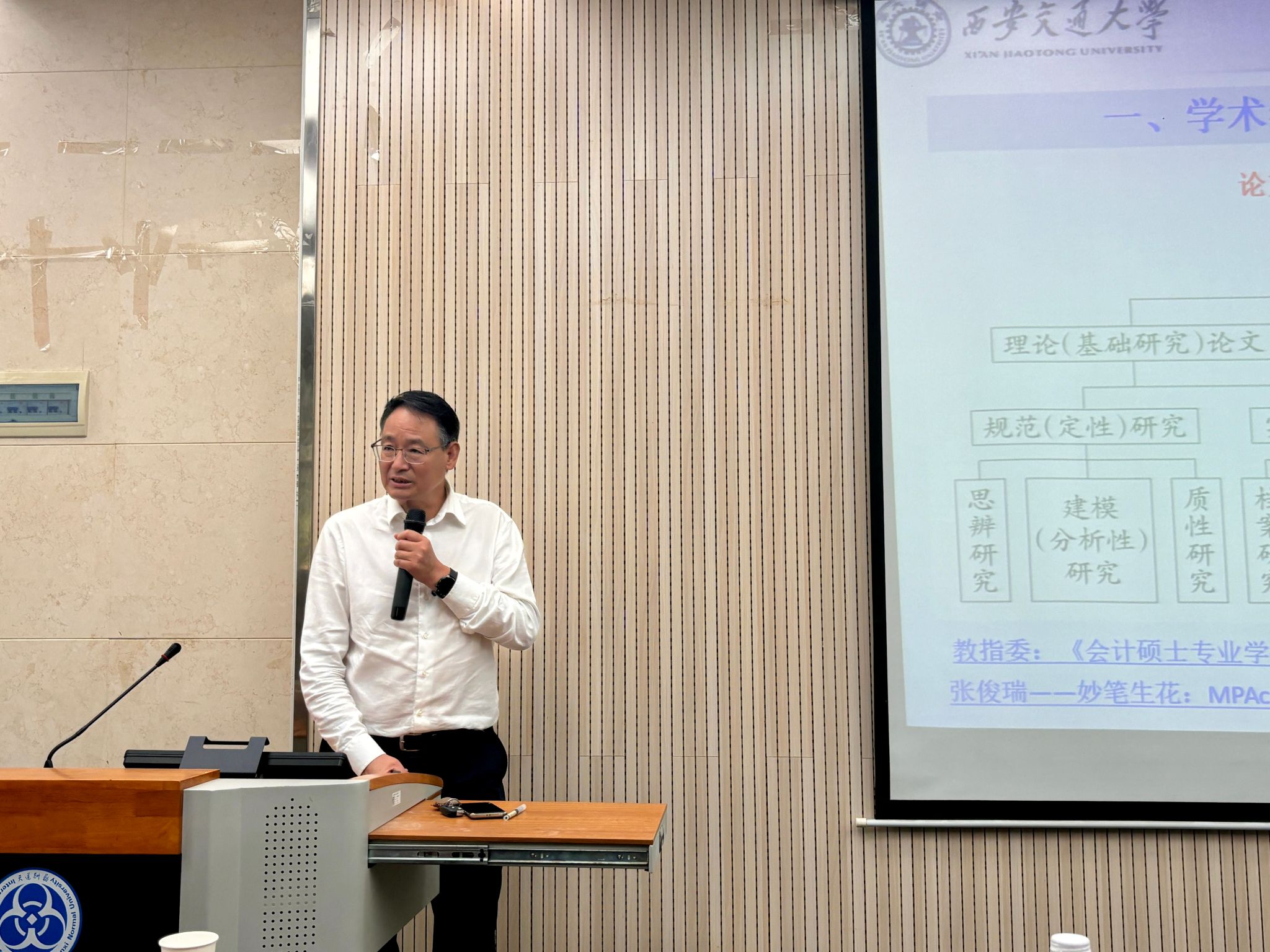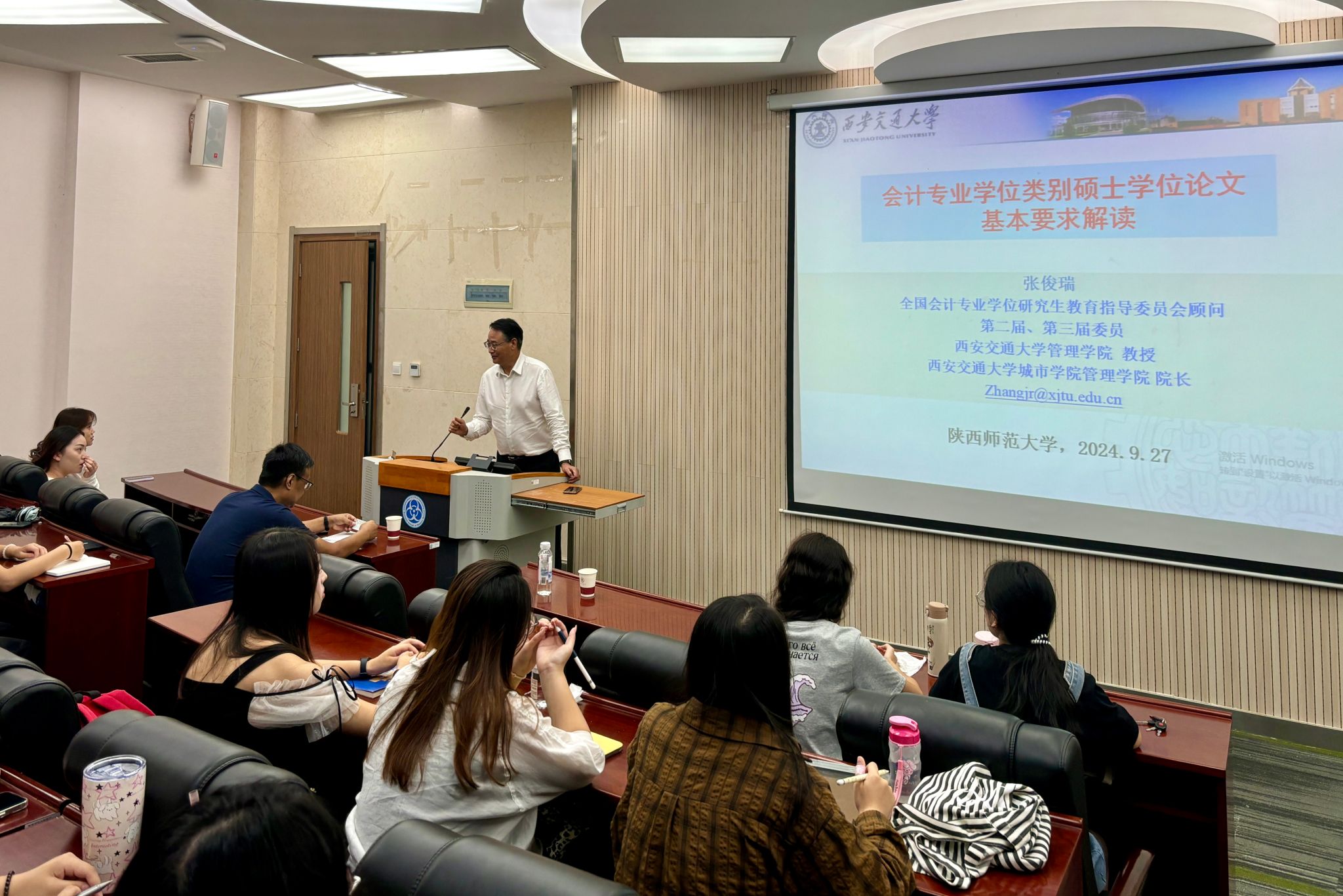 为了提高研究生新生对学位论文撰写规范的理解与掌握,推动会计专业学位研究生教育的高质量发展9月27日上午,公司在长安校区文澜楼1101报告厅举办2024级研究生新生“会计专业学位类别硕士学位论文基本要求解读”专题讲座。西安交通大学管理公司教授张俊瑞出席了活动并作了主题分享。讲座由公司MBA、MPAcc教育中心常务副主任徐国东主持。