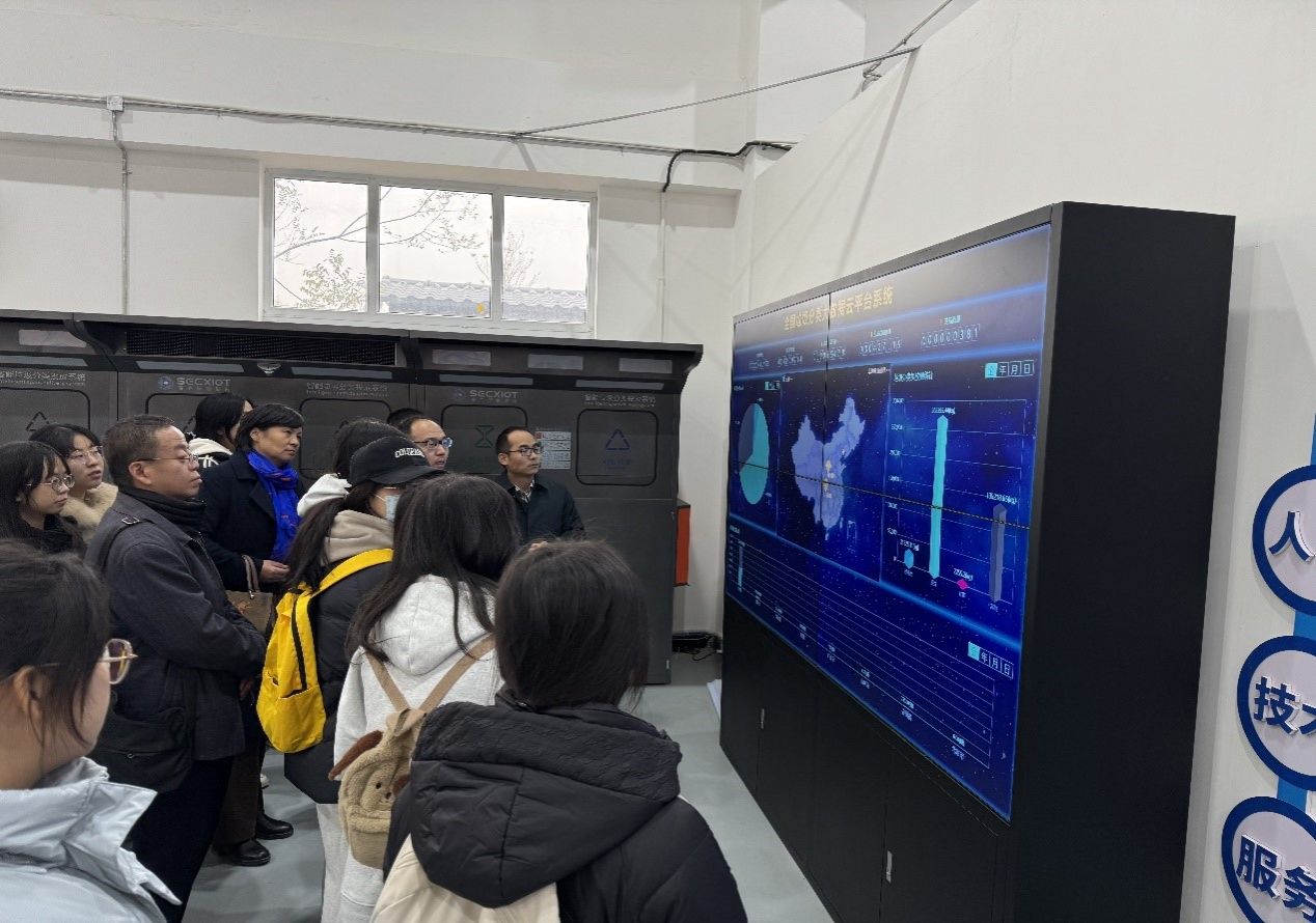 活动伊始,师生们参观了西安赛克斯物联网有限公司的核心产品展示区。丁思博总经理亲自介绍了公司在物联网领域的最新技术成果及应用案例,通过讲解和实地观摩,大家全面了解了物联网在生活废弃物循环再利用方面的创新性应用,深刻感受到科技驱动绿色循环经济发展的强劲动力。通过智能硬件设备操作演示、传感器数据采集流程讲解等实践活动,同学们对物联网技术的工作原理、应用模式及其对经济模式变革的深远影响有了更加直观的理解。这种沉浸式的学习方式进一步激发了同学们对物联网智能技术与绿色经济融合的探索兴趣。