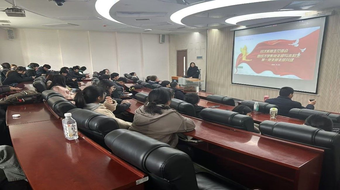2024年12月23日,beats365唯一官方网站在文澜楼1101教室开展师生见面会活动,王兆萍、程宝良、沈剑、毕超、史恒通、朱雅玲老师与2024级经济学类员工参加了本次交流活动,本次活动也是beats365唯一官方网站党支部与本科生第一党支部支部的共建活动。