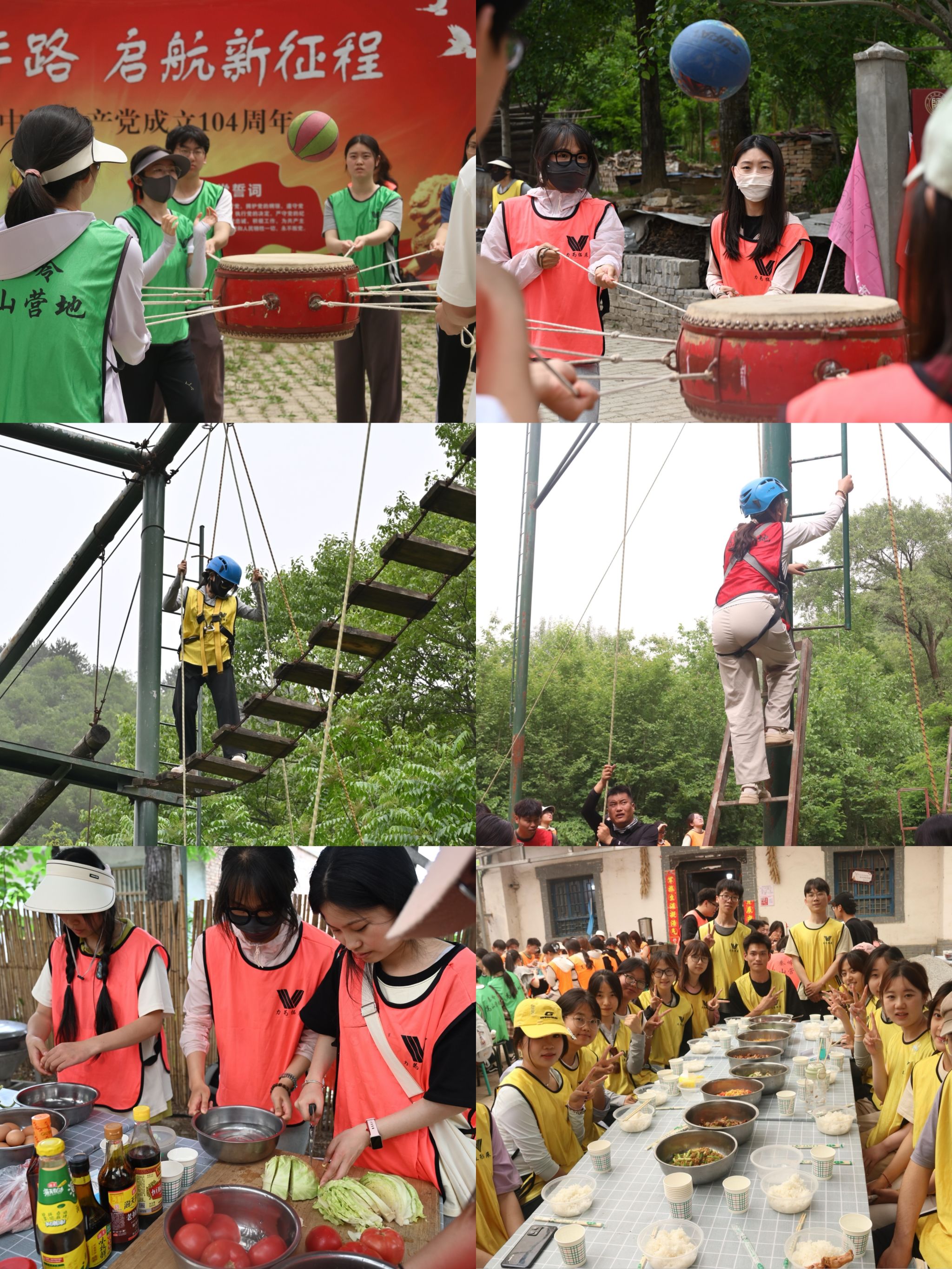 随后,在教练的指导下,同学们组成了6支队伍依次展示了队名、口号和队歌。在行走了2.5公里的山路后,同学们到达了高山营地开展了“鼓动人心”“人民公社大锅饭”“高空挑战”“生命动力圈”等项目。在比赛过程中,各队成员突破极限,为团队的胜利和荣誉而战。尤其在“生命动力圈”项目中,所有团队成员肩并肩围坐成两个同心圆,双手握绳,跟随音乐的节奏按照顺时针方画圈。每个人都为了实现团队的目标而坚持和努力,彼此信任和永不言弃的力量沿着绳子汇聚和流转,形成了强大的“动力圈”,增强了同学们之间的凝聚力和向心力。