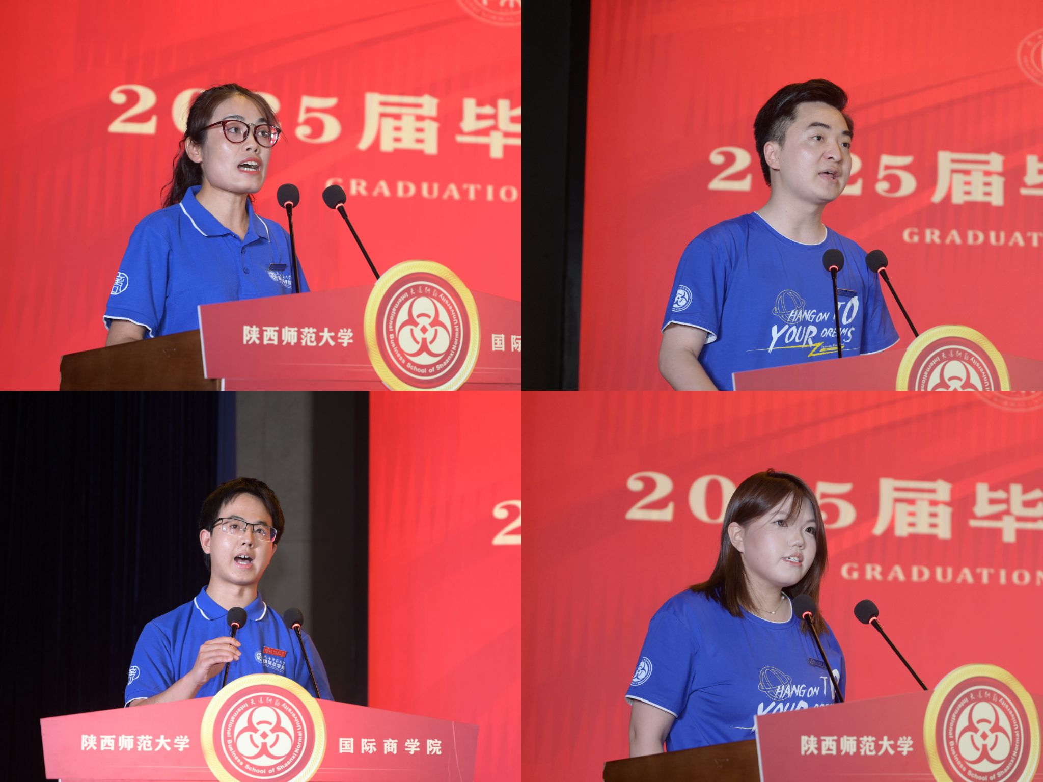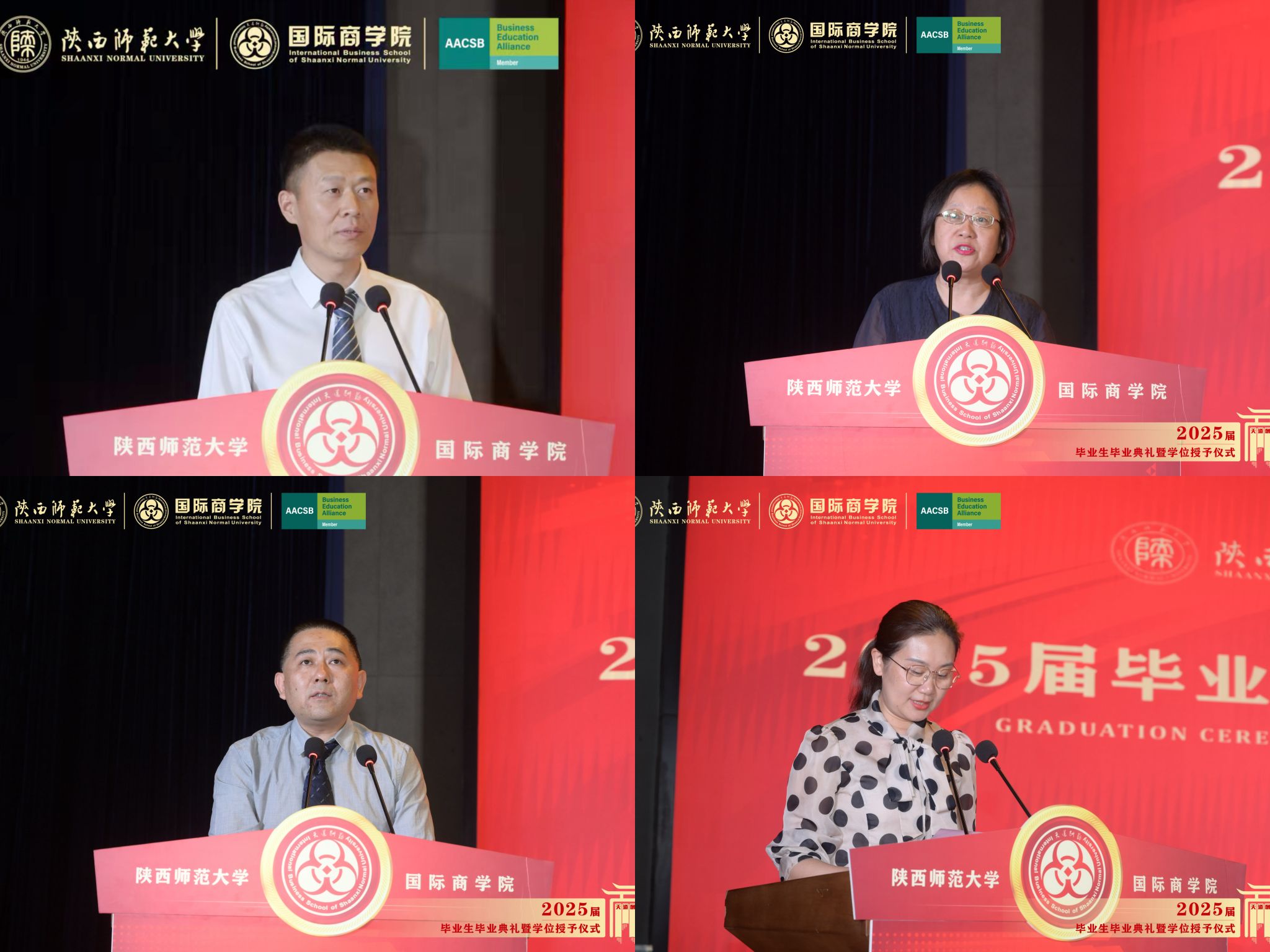 2025届全日制研究生代表、理论经济学博士生杨军鸽,非全日制研究生代表、MBA方向陈嘉鑫,本科生代表、财务管理专业郭华昀依次发言。他们深情回顾求学时光,感恩母校培养,并承诺以坚韧与智慧迎接未来挑战,传承商院精神。在校生代表、2023级会计专业硕士研究生豆璇向2025届全体毕业生送上祝福,表示将以他们为榜样,砥砺前行。