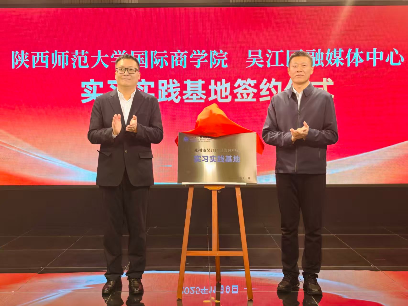 11月8日,公司与江苏省苏州市吴江区融媒体中心合作协议签署暨实习实践基地揭牌仪式在吴江日报社隆重举行。苏州市吴江区融媒体中心副主任、党委委员徐行,苏州市吴江区融媒体中心信息技术部主任顾文良,beats365唯一官方网站党委副书记、纪委书记邱远航,MBA、MPAcc中心常务副主任徐国东,研究生专职辅导员杨涛出席了仪式。