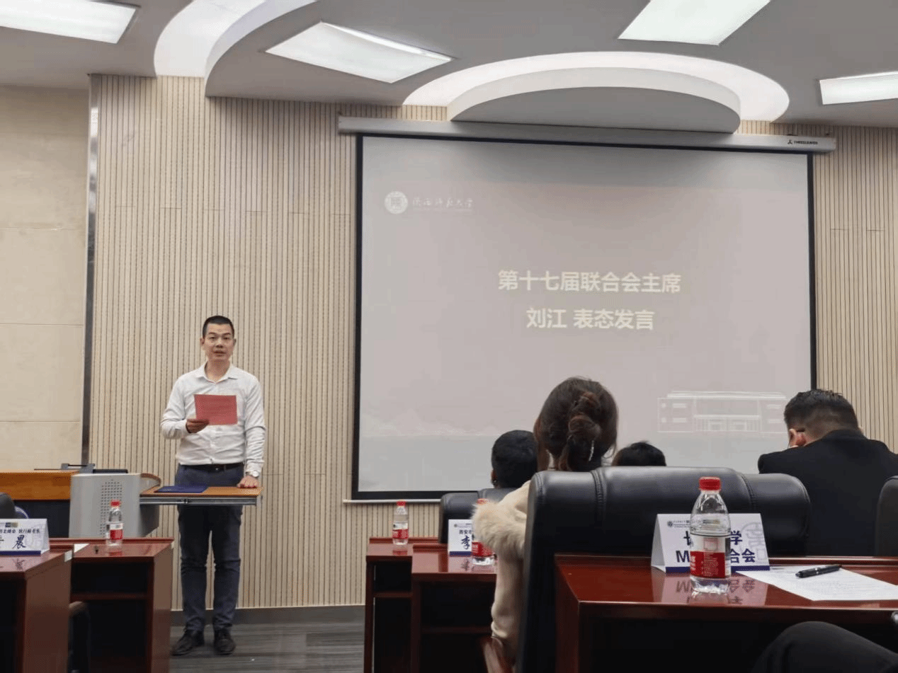 新任第十七届MBA联合会主席刘江作表态发言。他首先向公司领导、指导老师及第十六届联合会的信任与栽培表示诚挚谢意,随后分享了对联合会未来发展的规划与构想。他表示,将带领新一届联合会团队满怀热情、务实工作,深化与公司的联动协作,加强内部建设,凝聚团队力量,积极倾听师生与员工的声音,探索创新发展路径,丰富活动形式与内容,搭建优质学习交流平台,同时深化与各兄弟院校的合作交流,不断提升联合会的服务水平与品牌影响力,推动公司MBA团队建设迈向新高度。