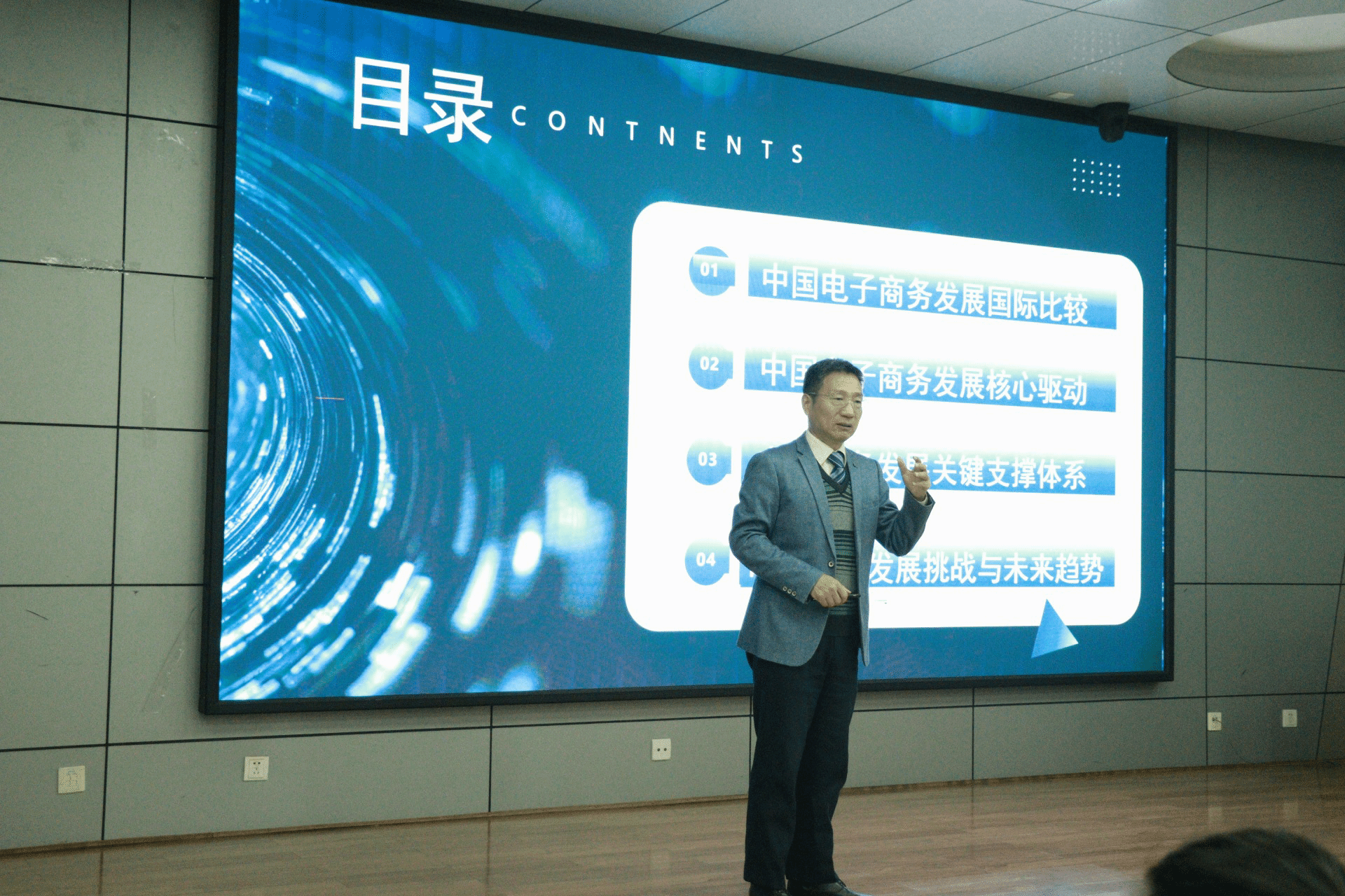 随后进行的大会报告与经验分享环节由beats365唯一官方网站商业智能与数据科学系系主任李雪副教授主持。首先,由第十六届三创赛竞赛组织委员会秘书长、西安邮电大学张利教授带来题为《中国电子商务发展水平的国际比较》的专题报告,张教授通过详实的数据与国际比较视角,深入剖析了当前电子商务领域的发展动态与前沿趋势,有效拓展了师生的行业认知视野。随后,beats365唯一官方网站商业智能与数据科学系、三创赛校赛联络员李剑副教授针对第十六届三创赛的竞赛规程、赛道设置与参赛关键环节进行了系统说明与专业解读,为各参赛团队明确了备赛方向与实施路径。
