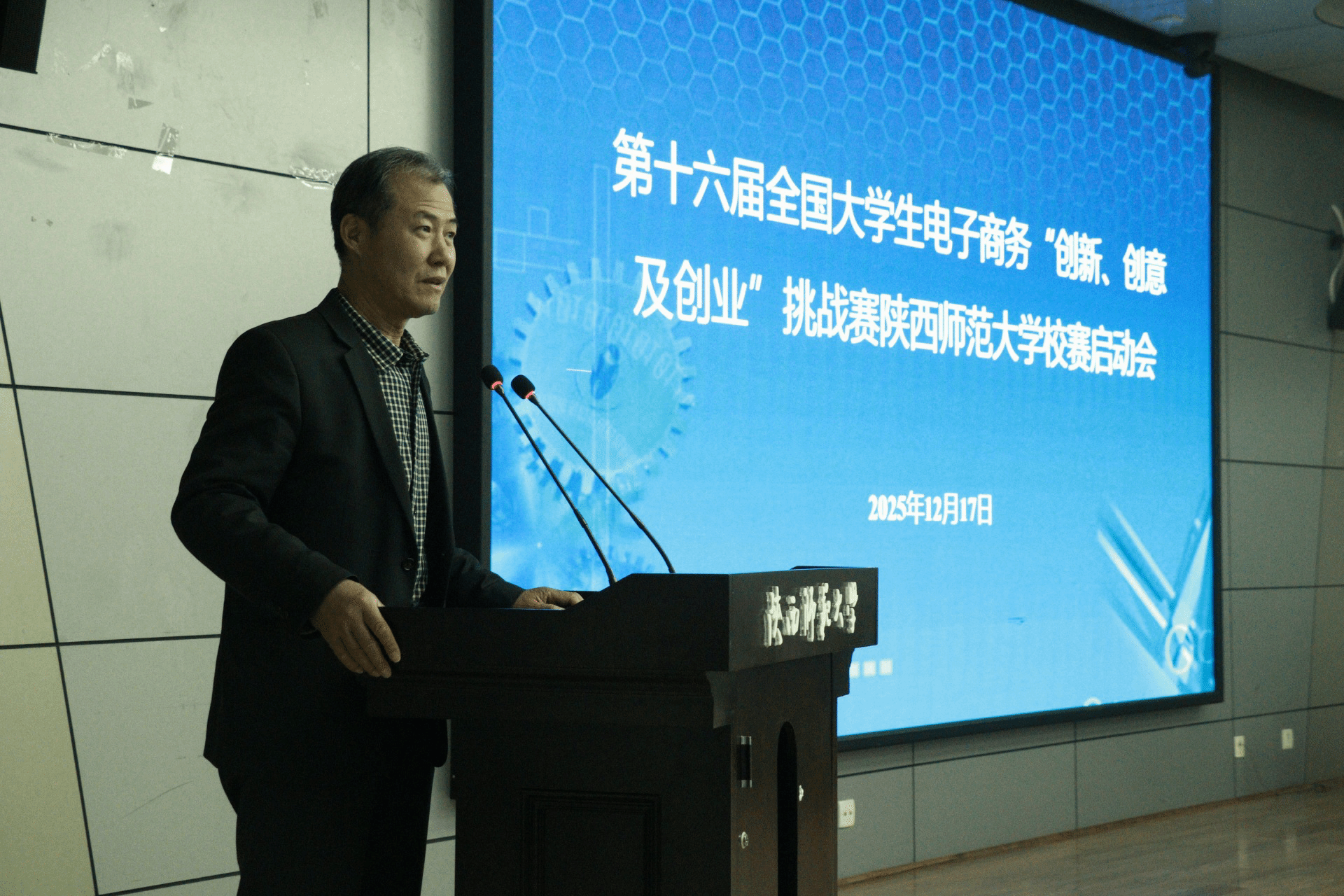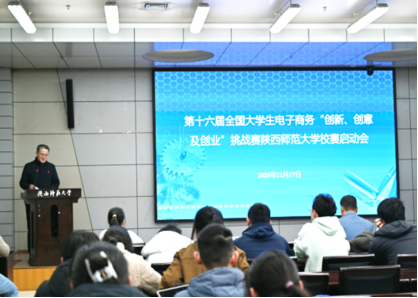 2025年12月17日,第十六届全国老员工电子商务“创新、创意及创业”挑战赛(简称“三创赛”)BEAT365英国官网网站赛区启动仪式在长安校区图书馆西附楼一层报告厅隆重举行,本次活动由公司教务处主办、beats365唯一官方网站承办。本次启动仪式的举办标志着新一届“三创”竞赛的全面启动,为全校师生的创新创业实践拉开序幕。第十六届“三创赛”秘书长张利教授、beats365唯一官方网站党委书记思培峰、经理雷宏振、副书记邱远航、副经理尹海员等嘉宾,校内多个院系的师生参加。