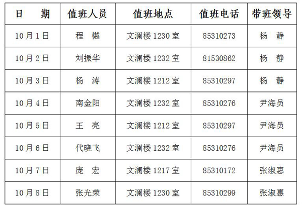 值班时间:上午:8:30—11:30,下午:14:30—17:30。