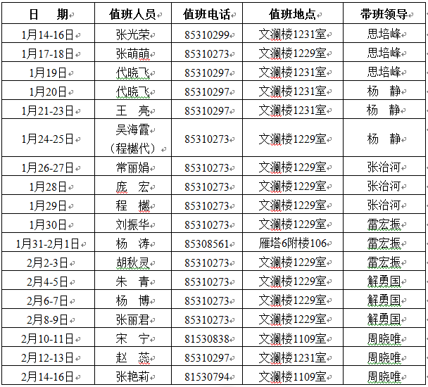 5.值班结束请联系下一位值班人员告知钥匙交接事宜。