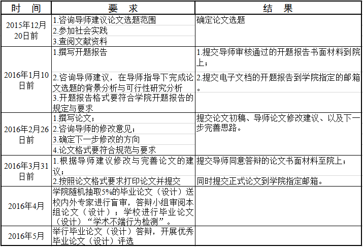 3.公司审核的时间节点为:2016年1月10日:导师同意开题的开题报告提交;2016年2月26日论文初稿及修改意见提交;2016年3月31日正式毕业论文提交;未按时提交一律视为未完成;
