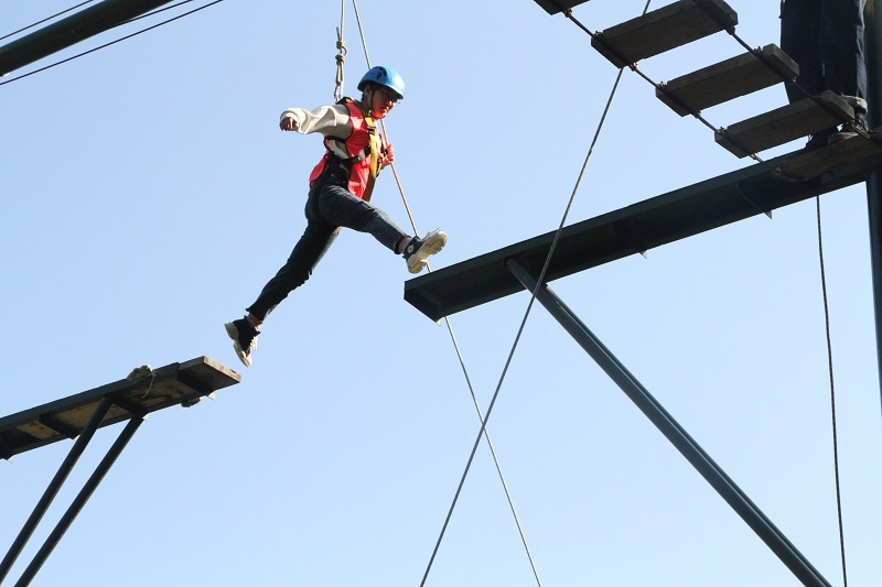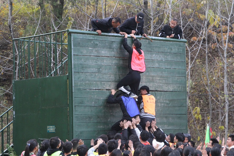 随后,教练带领所有队员徒步上山,前往秦岭高山营地完成了“飞越断桥”“挑战独木桥”等高空挑战项目和“人民公社大锅饭”“鼓动人心”等地面活动。最后一个项目 “毕业墙”给员工留下了最为深刻的印象,4.2米高的墙体要求194名队员在一个小时内全部通过,面对难关,大家齐心协力,用身体搭建人梯。最终,全体成员只用了26分59秒顺利“过墙”,顺利完成素质拓展的全部项目。